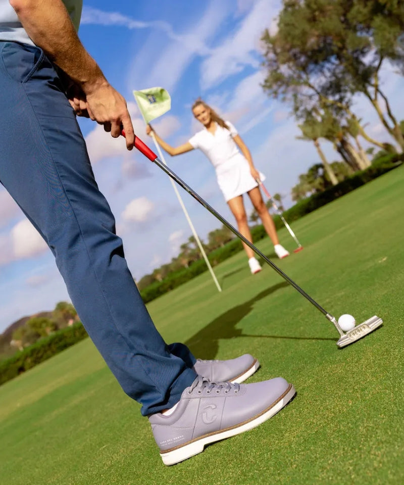 Our men's grey golf shoes feature a lightweight EVA midsole, INSITE® insole, and Airplay Milano outsole, delivering superior traction, comfort, and cushioning. The waterproof microfiber upper adds a touch of elegance, ensuring you perform with style and confidence on the course.