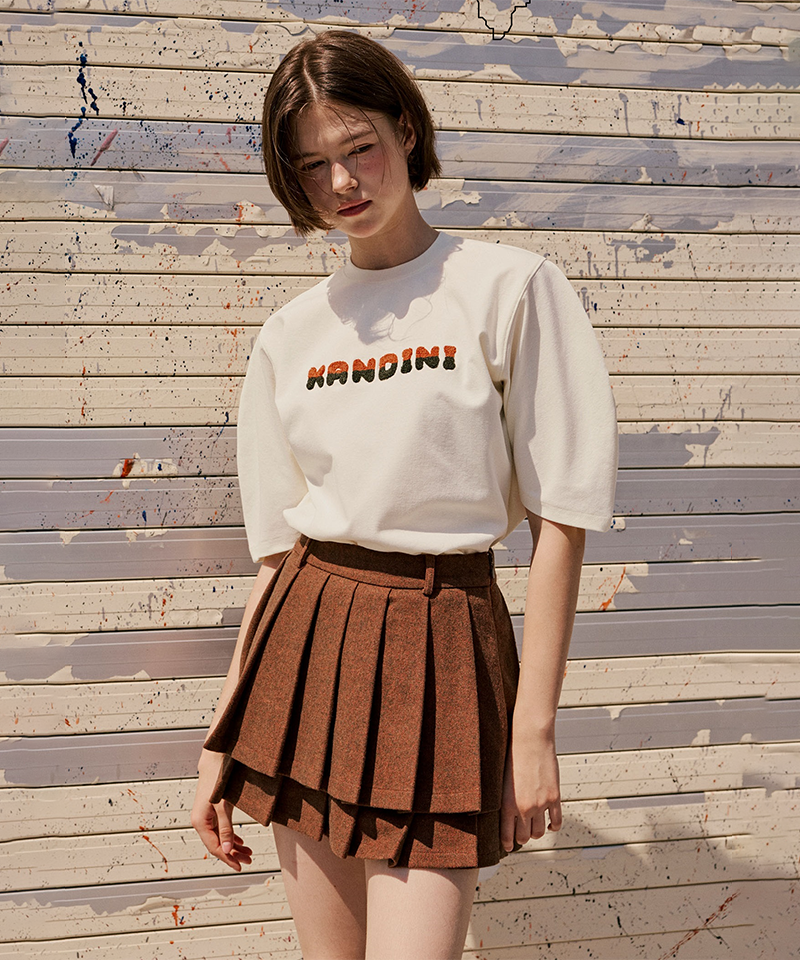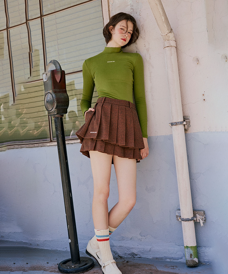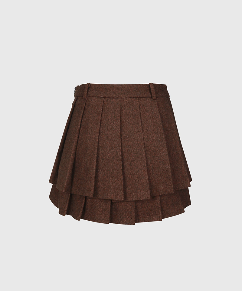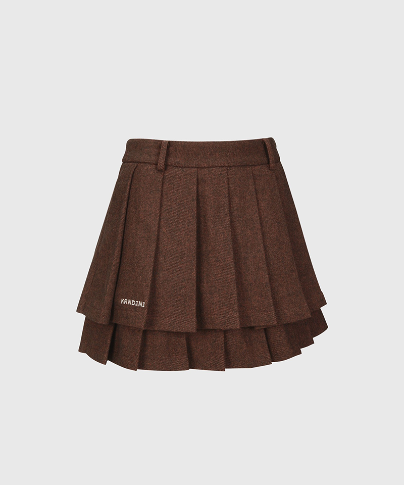 KANDINI Wool Tiered Pleated Skirt - Brown