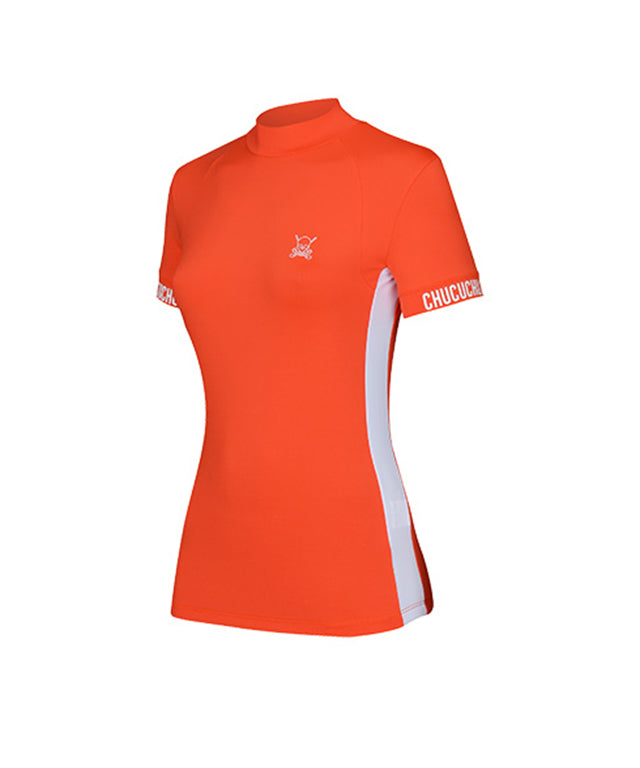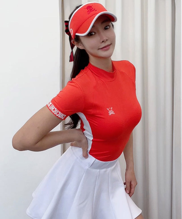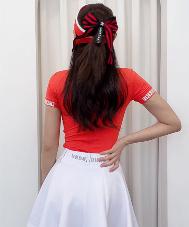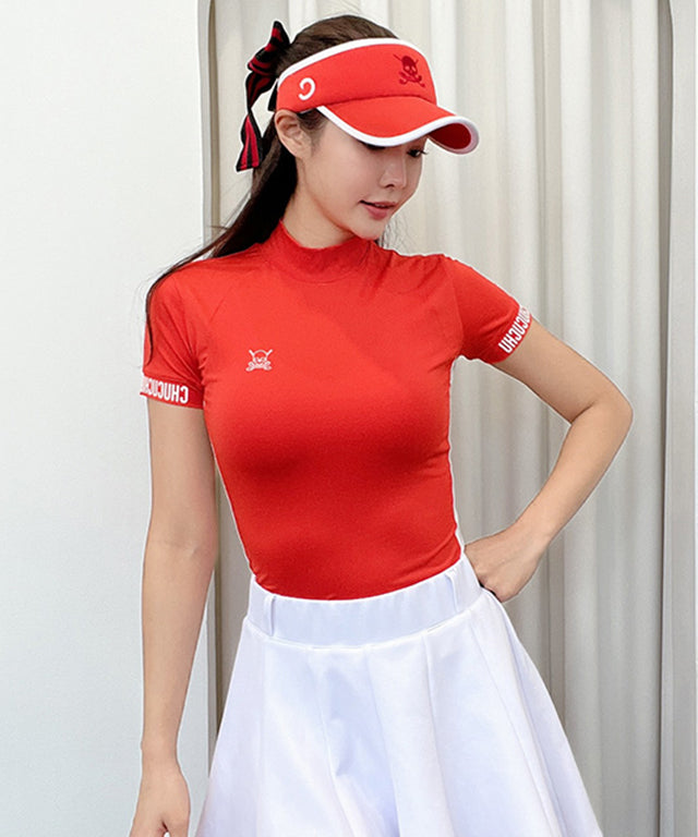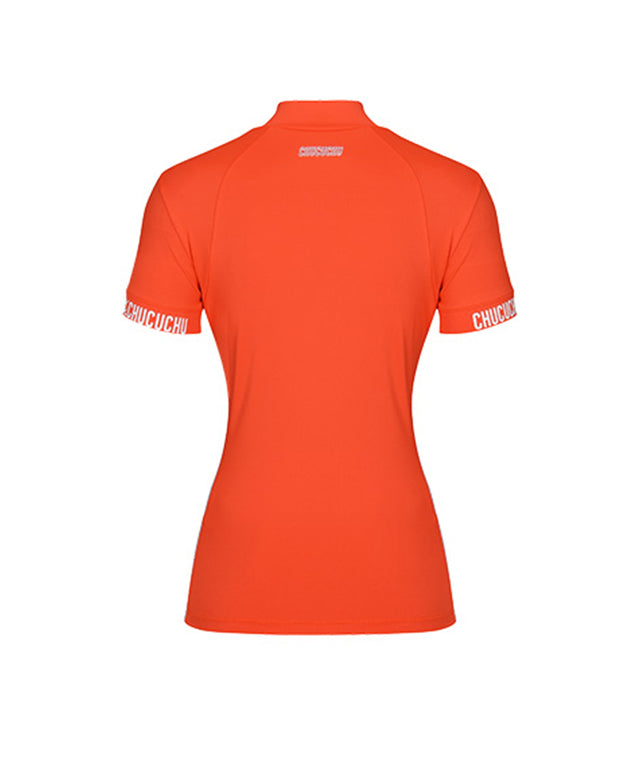 CHUCUCHU Women's Logo Point Mesh Top - Red