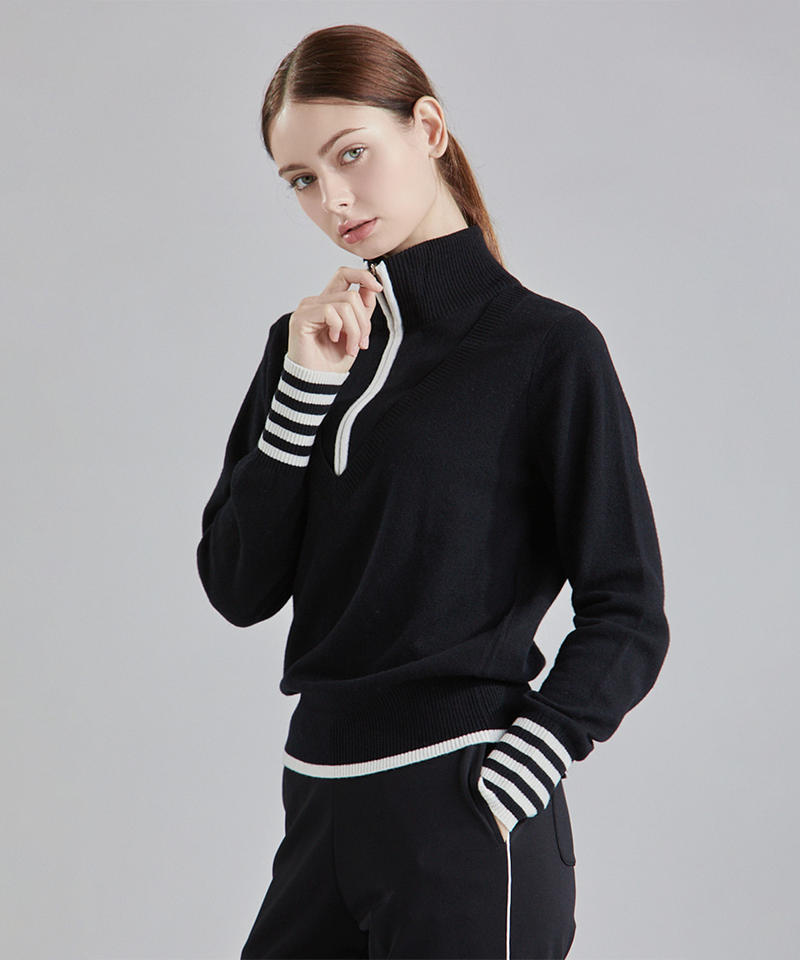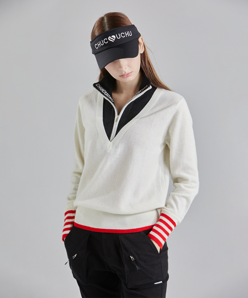 CHUCUCHU Deep Half Zip-Up Wool Blend Knit - 2 Colors