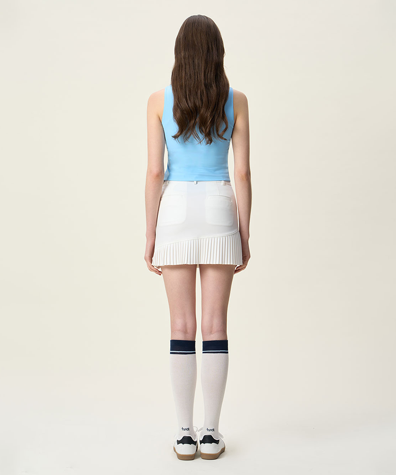 Elevate your style with this elegant pleated skirt featuring a back yoke detail for a sophisticated touch. The semi A-line cut creates a feminine silhouette with graceful movement, while fordi's embroidered symbol adds a luxurious accent. Designed for comfort with a back logo band and built-in shorts for secure wear. Perfect for effortless chic with a flattering drape.