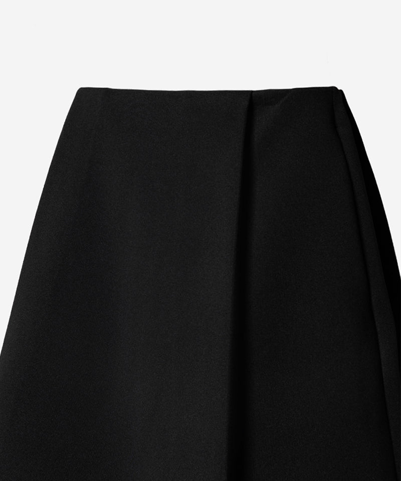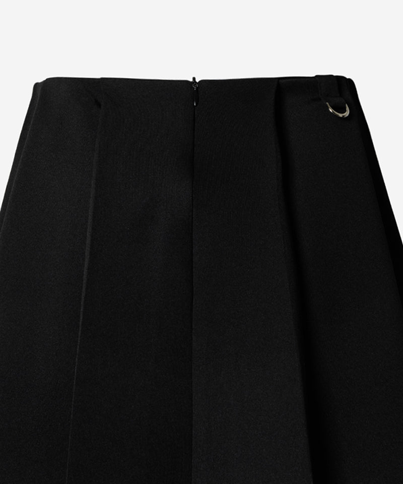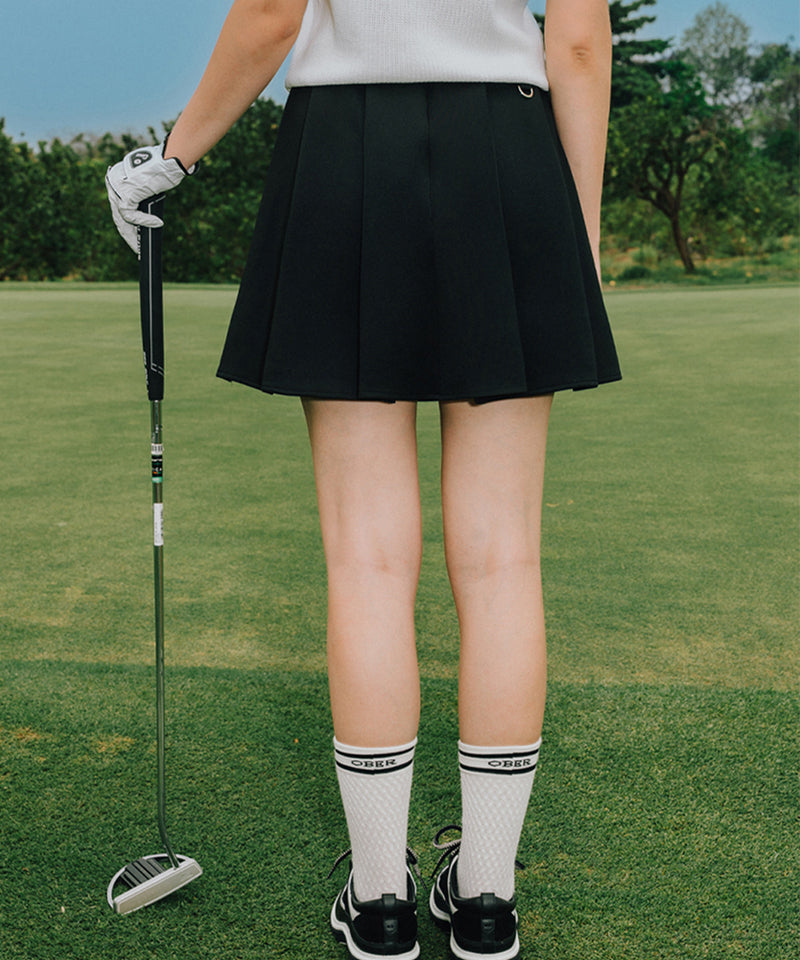 This skirt is crafted from high-elasticity functional material, ensuring free and comfortable movement throughout the day. The elegant A-line silhouette is enhanced by a unique chin design that differs between the front and back, adding a refined touch. Hidden waist banding provides a secure yet comfortable fit, while side pockets offer convenient storage. Built-in inner pants make it easy to wear with confidence. With its simple yet sophisticated design and classic color, this skirt is perfect for both golf and everyday styling.