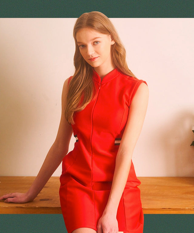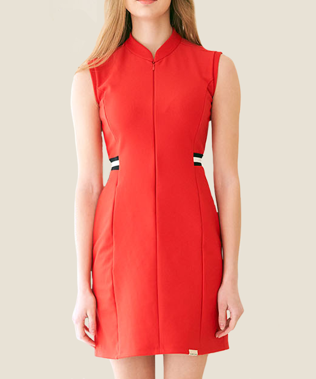 The V-neck line helps make the neck look thin and long, and a strong zipper makes it possible to create a variety of looks. The waist line arranged with incision lines on the front and back, giving beauty to the hidden slim curved line.