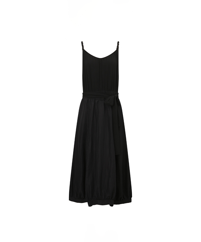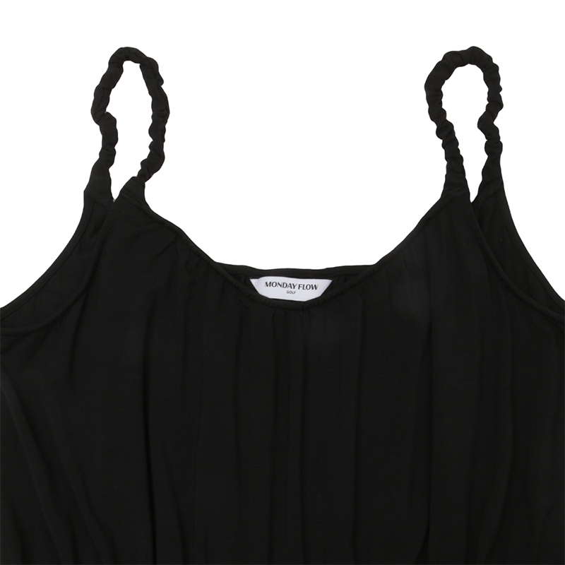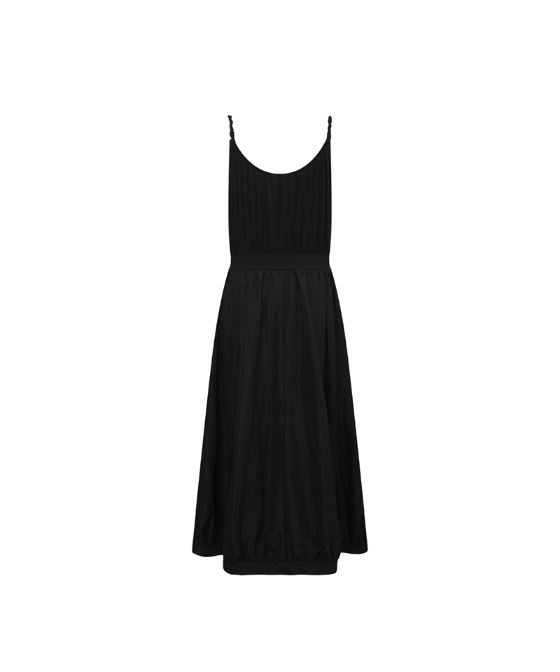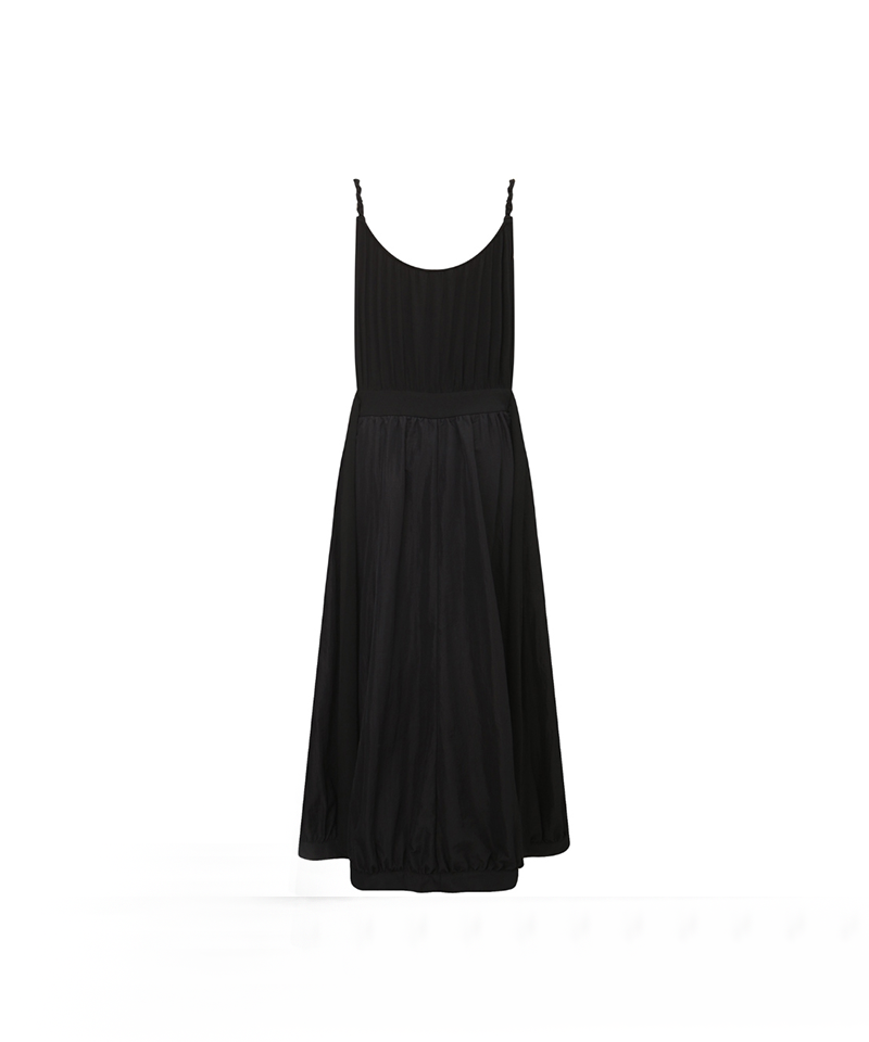 This summer one-piece features a breezy design with a soft V-neck and an open back that enhances airflow. The contrasting materials—cool, stretchy Tencel on top and lightweight nylon skirt—ensure comfort and style. Adjustable waist ties allow for a tailored or relaxed fit, while pleated and shirred details add elegance. Its asymmetrical hem and textured fabric blend create a refined yet airy look, perfect for effortless summer sophistication.
