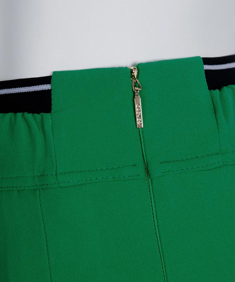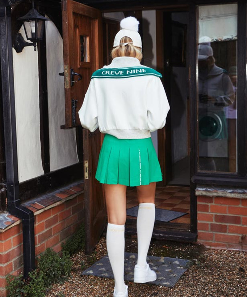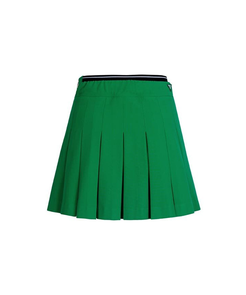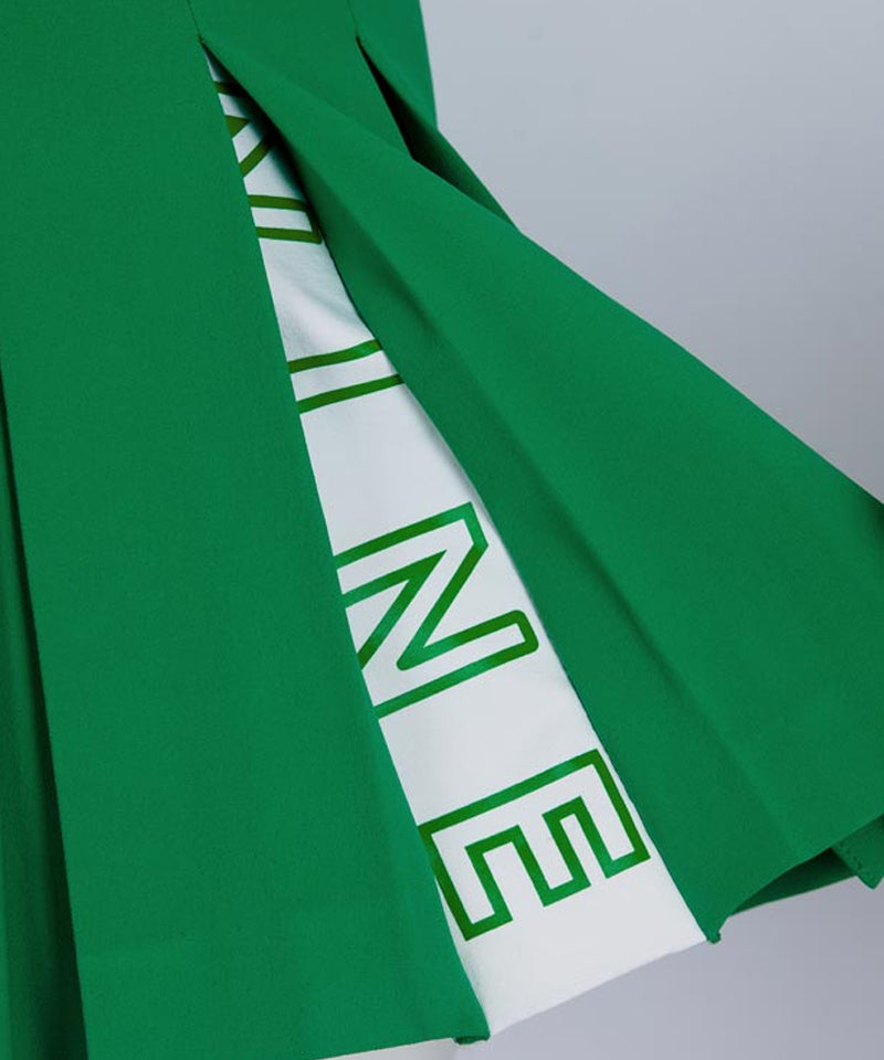 CREVE NINE: Logo Swing Pleated Skirt - Green