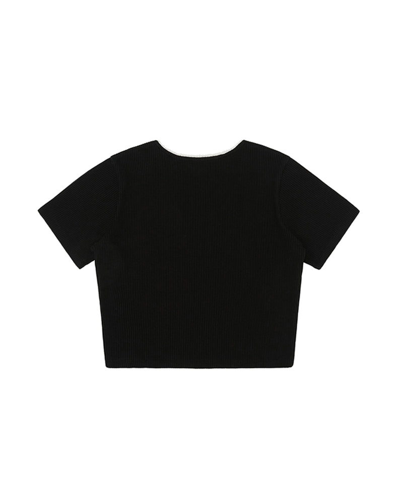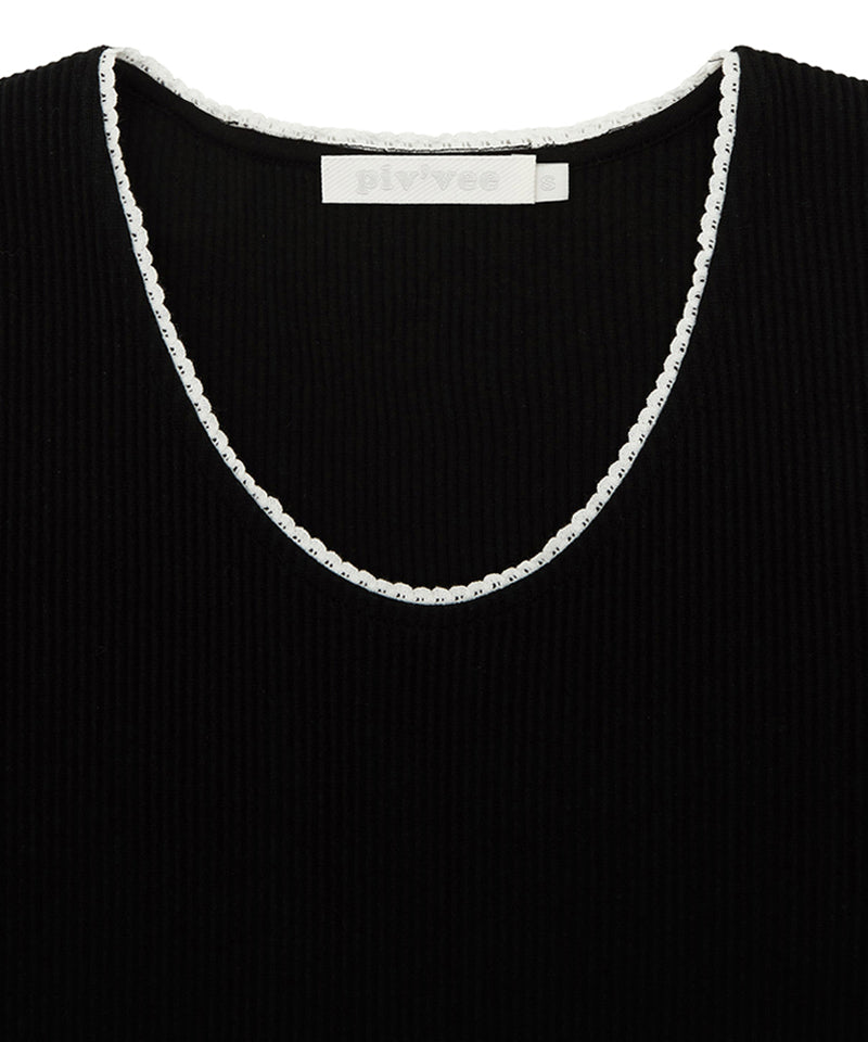 PIV'VEE Lace Ribbed T-shirt - Ebony Black