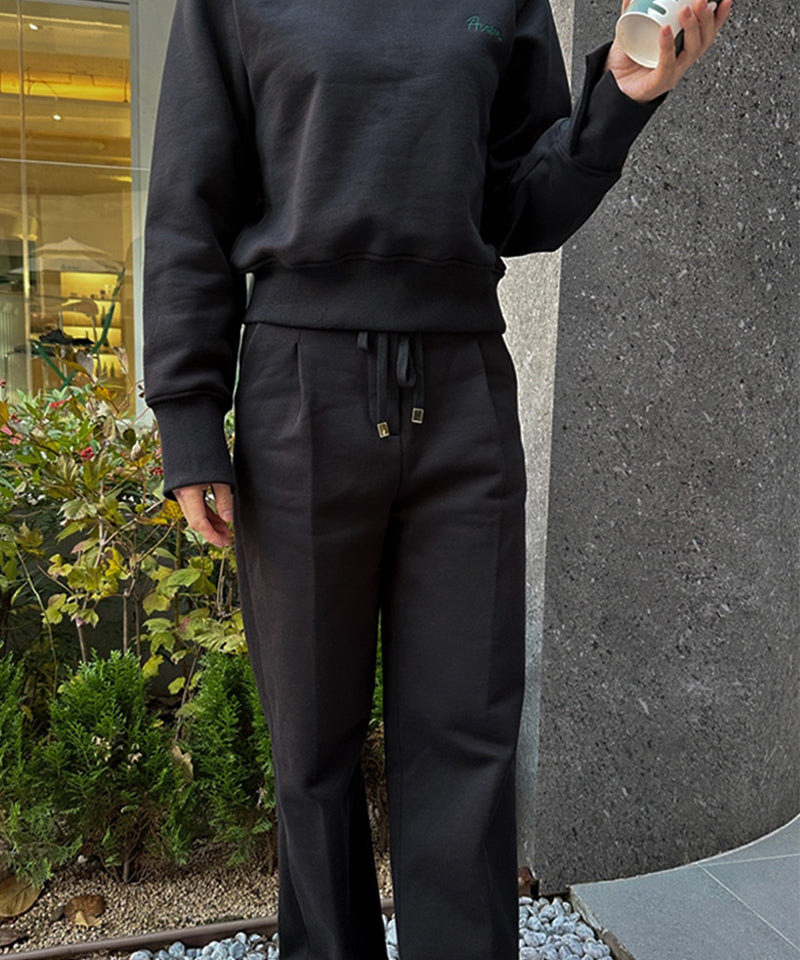 It is a comfortable cropped length sweatshirt with a stretchy feel. It is a good item to wear comfortably in various ways during sports activities or in everyday life with its basic design.