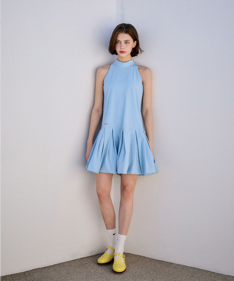 KANDINI Breezy Flare Halter Dress - Sky Blue