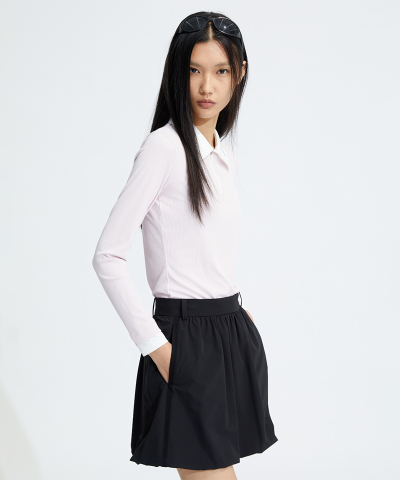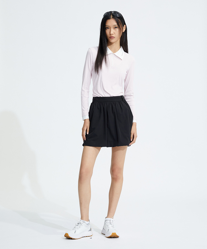 Introducing the Monday Flow Balloon Silhouette Skirt – a lightweight stretch skirt designed to deliver both femininity and function with effortless style. From the moment you put it on, its voluminous yet flattering balloon silhouette gives off a pretty and elegant vibe without being overly bulky. Crafted from a nylon-spandex blend, the fabric offers excellent stretch, a wrinkle-free finish, and a soft, non-sheer texture, making it ideal for wear through midsummer.