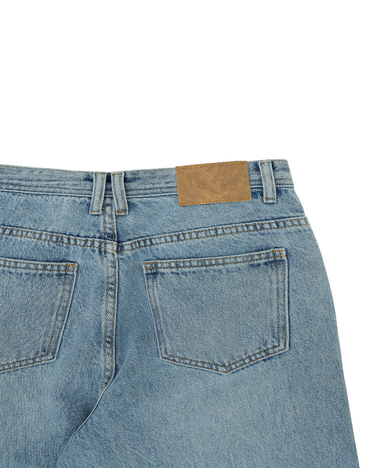 These straight-cut denim pants feature a button and zipper fly closure for a refined finish. A leather patch with the brand logo at the back adds a touch of timeless elegance. The natural wash enhances a streamlined silhouette, elongating the legs with a sleek, straight fit. Crafted from 100% cotton for comfort and quality.