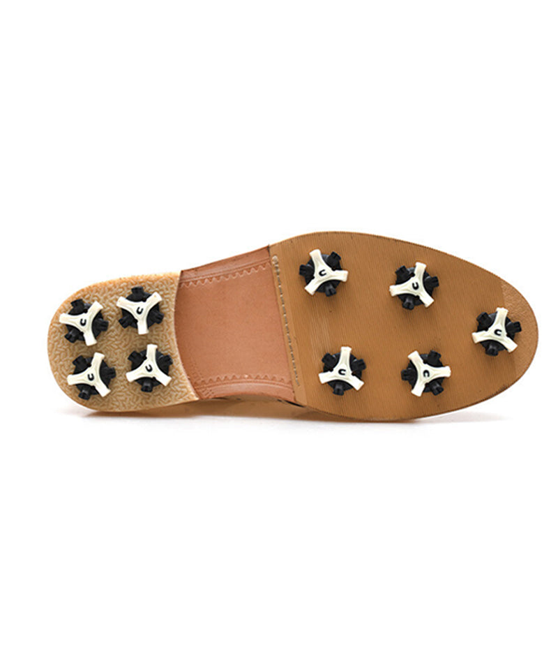 Made from soft imported cowhide, this premium golf shoe combines luxury and performance. The leather red sole and high-grip spikes ensure excellent traction on the course, while the Gore-Tex lining provides waterproof protection. Featuring a sophisticated leather sepia finish and an Ortholite insole for superior comfort, this shoe offers both style and functionality for an enhanced golfing experience.