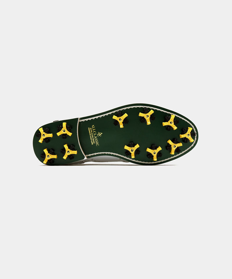 Waterproof coated Italian leather comfortable urethane insole spikes with good traction and luxurious classic design.