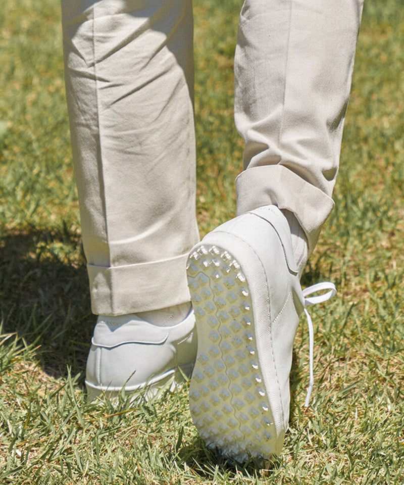 Waterproof coated Italian leather comfortable urethane insole. Spikeless outsole suitable for golf and everyday wear comfortable fit.