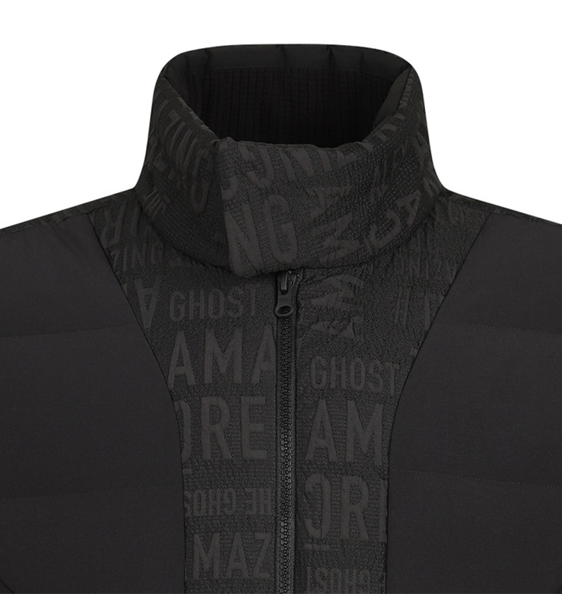 Elevate your layering game with this refined men's down vest, featuring an intricate 3D logo jacquard design that adds visual depth and contemporary style. Crafted with premium down insulation, it delivers exceptional warmth without bulk, making it ideal for transitional seasons or as a sophisticated mid-layer. The structured silhouette and textured jacquard pattern create a polished aesthetic perfect for both casual and smart-casual settings. Lightweight yet insulating, this vest seamlessly transitions from office to weekend wear.