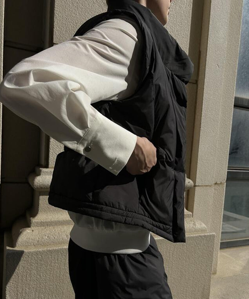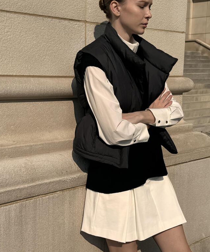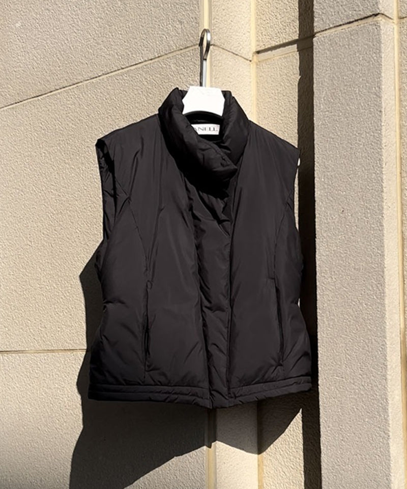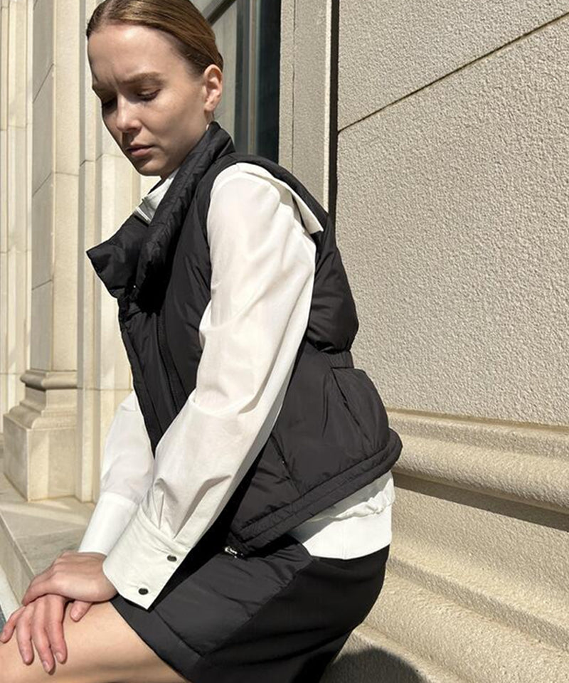 Styling of the 100% duck down padding set is possible. This is a comfortable and luxurious style Vershort duck down. Light and warm golf padding with duck down filling comfortable yet luxurious silhouette. A stylish point with a bold neck design and inner rib tape detail style and comfort at the same time with the waist banding fake belt. Enhanced practicality with zipper pockets on both sides provides high thermal insulation with lining fleece fabric.