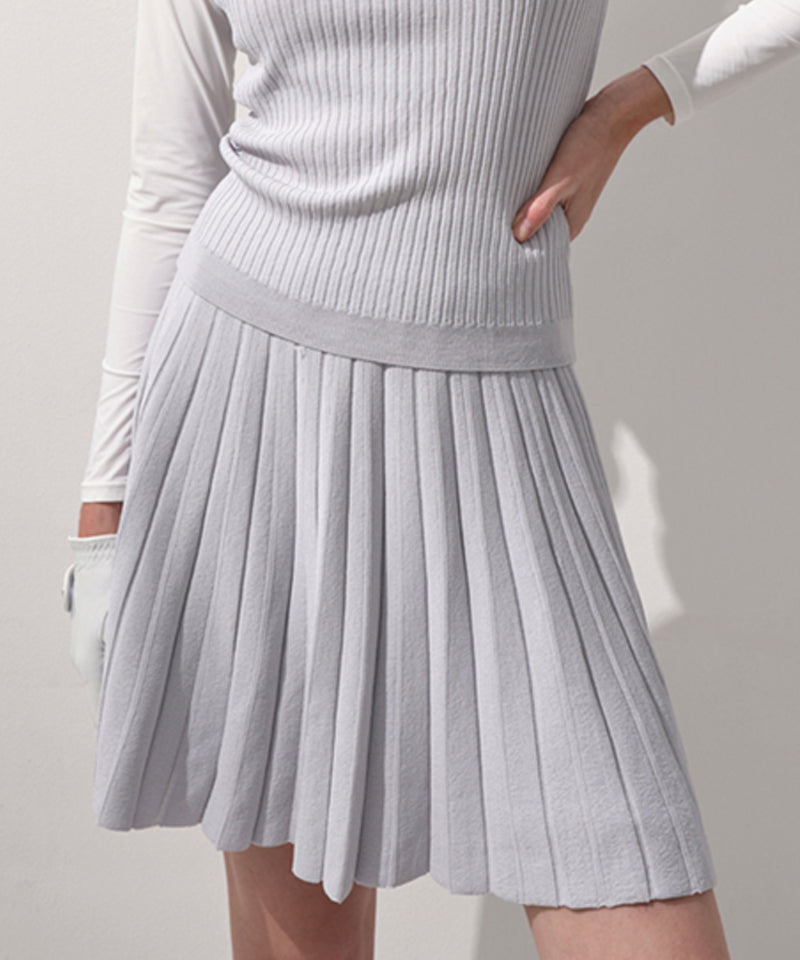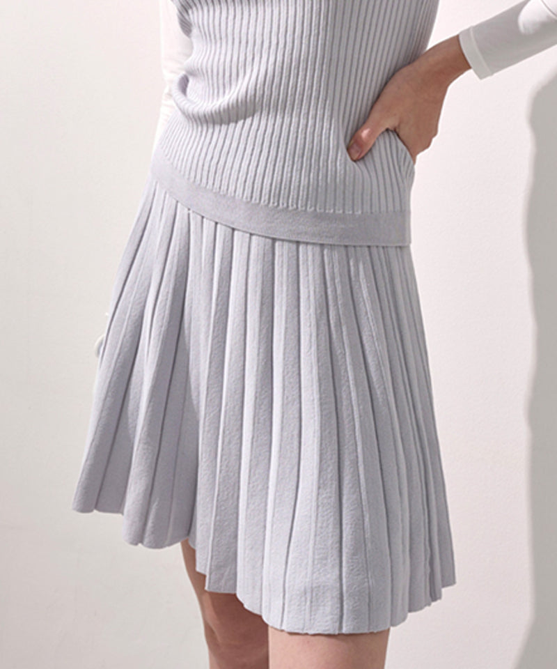 This is a pleated summer knit skirt with a cool, flowing pleat structure. Pleated design skirt with cool, flowing knit structure knit pleats with gorgeous turns. Skirt that can be styled as a dress. Prevent see-through chiffon skirts and cool functional underpants with special sewing. Comfortable high elastic banding throughout the waist.