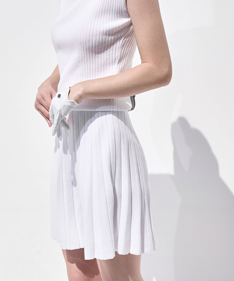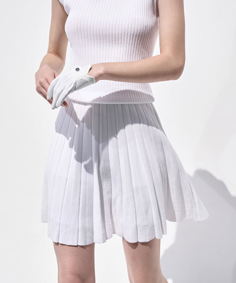 This is a pleated summer knit skirt with a cool, flowing pleat structure. Pleated design skirt with cool, flowing knit structure knit pleats with gorgeous turns. Skirt that can be styled as a dress. Prevent see-through chiffon skirts and cool functional underpants with special sewing. Comfortable high elastic banding throughout the waist.