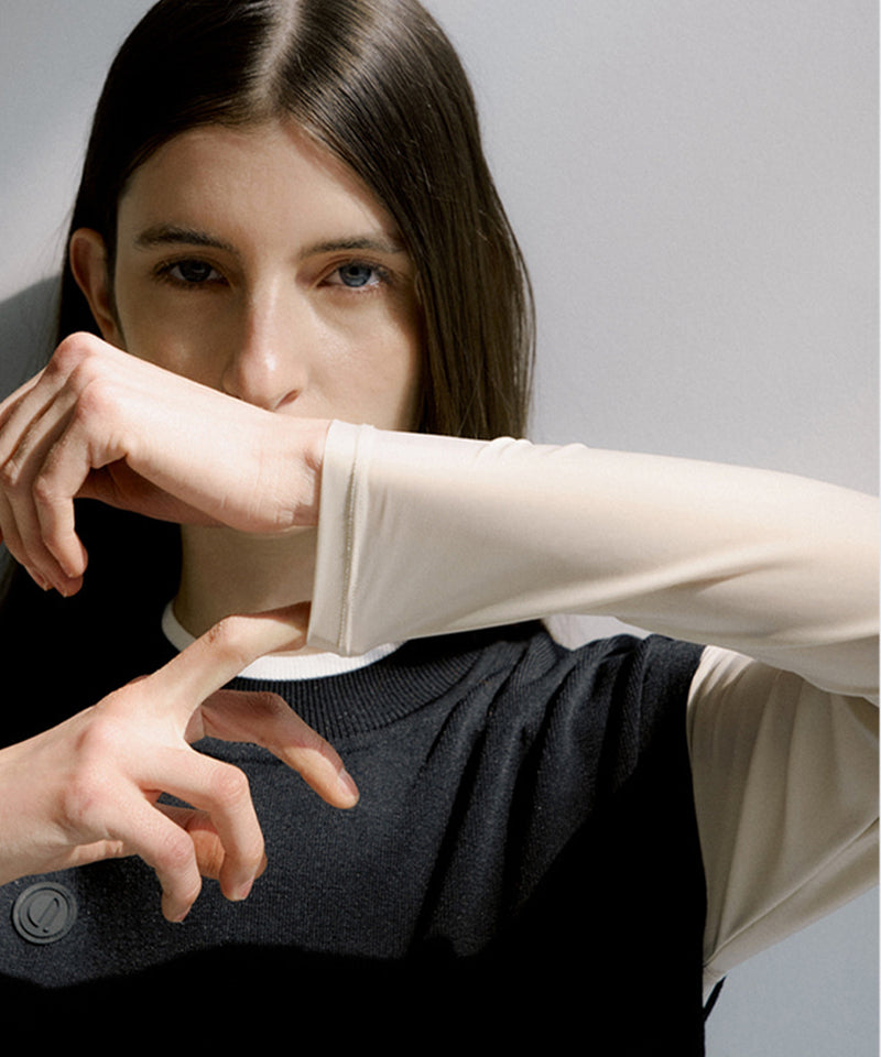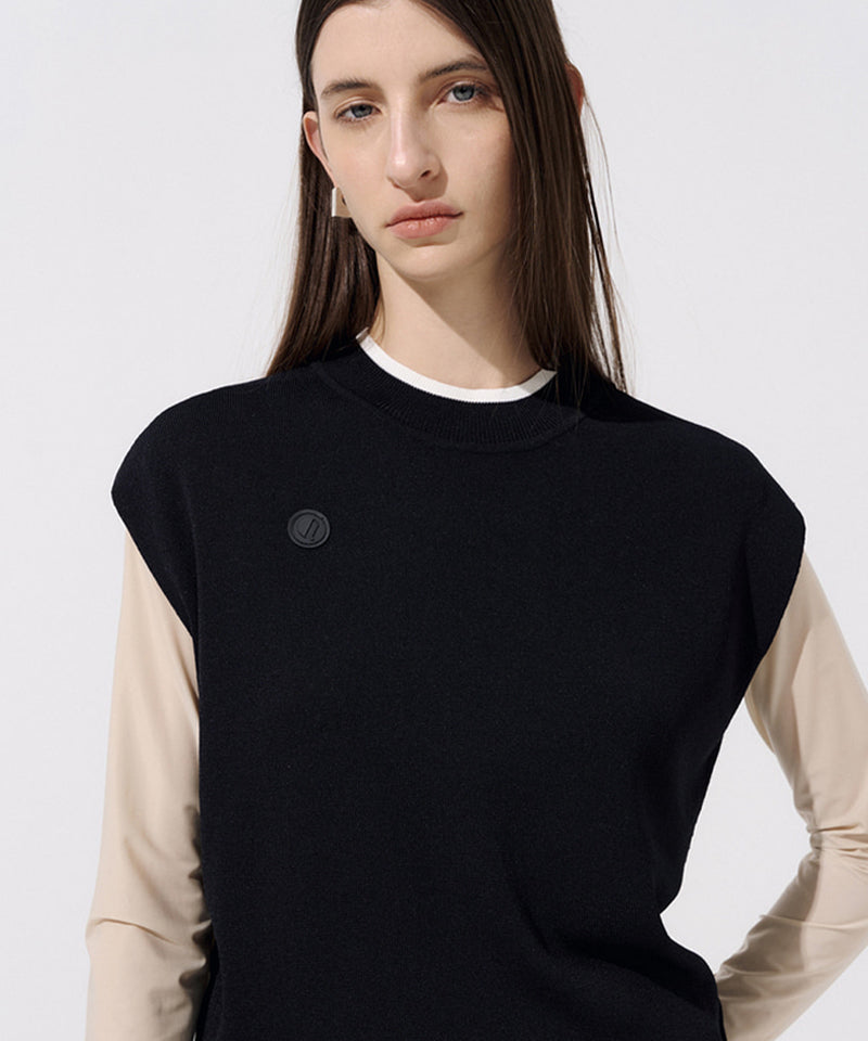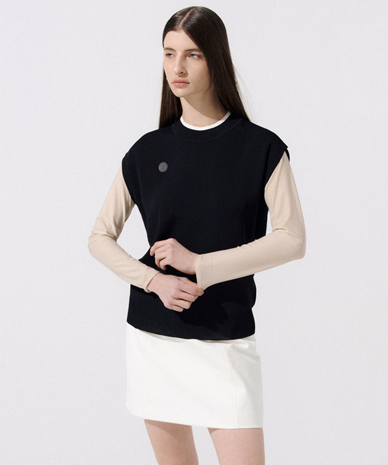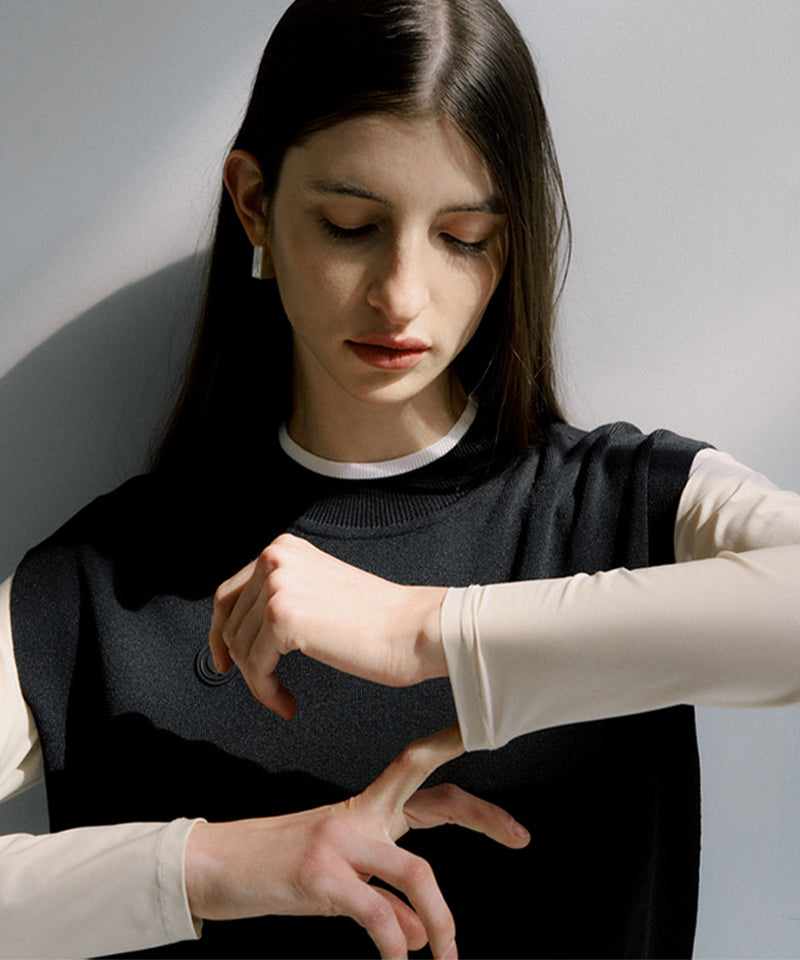 This is a cropped inner top that is cool and comfortable for layering. It features cool functional sleeves and a body made from mesh fabric with excellent breathability. The arm warmer fabric provides a refreshing cooling sensation along with UV protection. Soft imported bands are used to ensure a non-restrictive fit, and the elastic Creora functional fabric enhances comfort and flexibility. It is crafted using a special sewing method, Odlamp, typically used in making leggings. This layering item offers a soft fit, excellent moisture-wicking, and quick-drying functions, making it perfect for active wear.