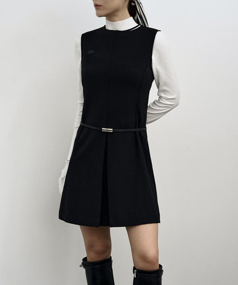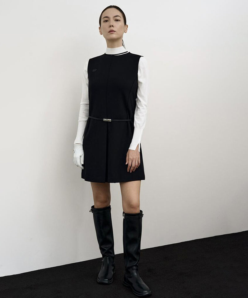 A comfortable fit that doesn't lose its silhouette this is an Er Golf one-piece dress that creates a slim fit with a princess line. A golf one-piece dress with a comfortable fit but a defined silhouette slimming effect with princess line. Front-to-back design provides mobility and a luxurious fit classic design with back pockets and button details. Add a unique point with Anell's rubber label additional warmth provided by the fleece underwear set. Design with added practicality with a belt loop easy to put on and take off with the back zipper.