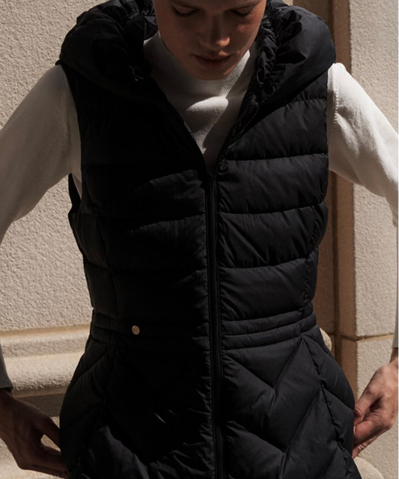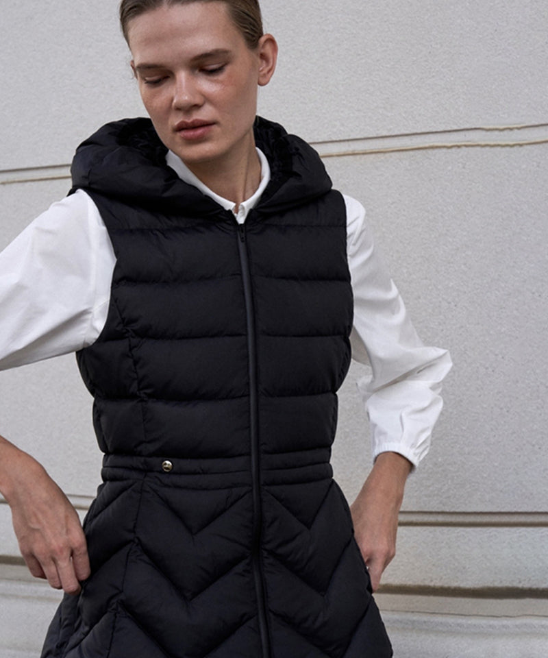 This luxurious and feminine silhouette features a length that completely covers the hips, offering both style and practicality. Designed with a silicone waterproof zipper detail and usable pockets, it provides functionality without compromising elegance. The neck warmer design extends up to the neckline for a warm and snug fit, while the lightweight duck down filling ensures enhanced warmth without added bulk. Its regular fit offers good mobility, and the slimline padding beautifully emphasizes the waistline for a flattering look. Anel's functional master item is perfect for staying comfortable and stylish throughout the entire winter season.