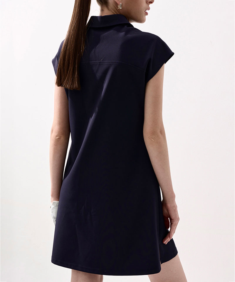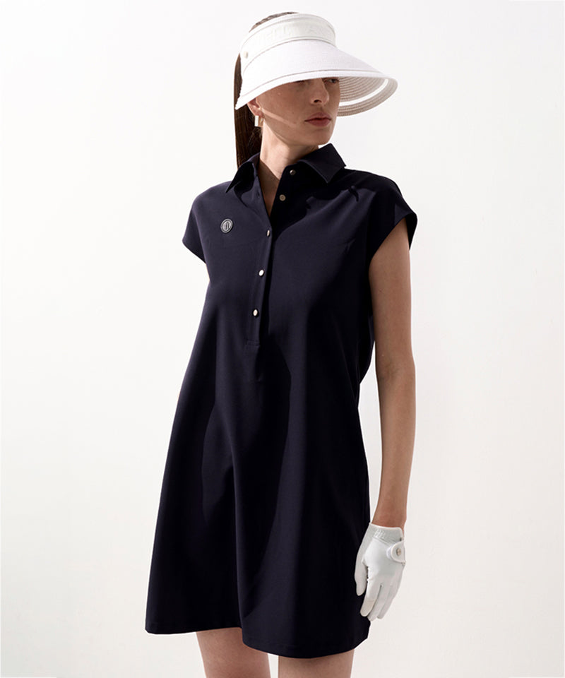 This is a premium golf one-piece with a semi-Nagran style collar detail this is a set product delivered with underpants. Slim-looking collared one-piece dress semi-Nagran style that covers the forearm. After careful sample testing, the neck does not lift up. Functional material that stretches in all directions. Sweat-wicking, quick-drying, antibacterial material, and underpants with.