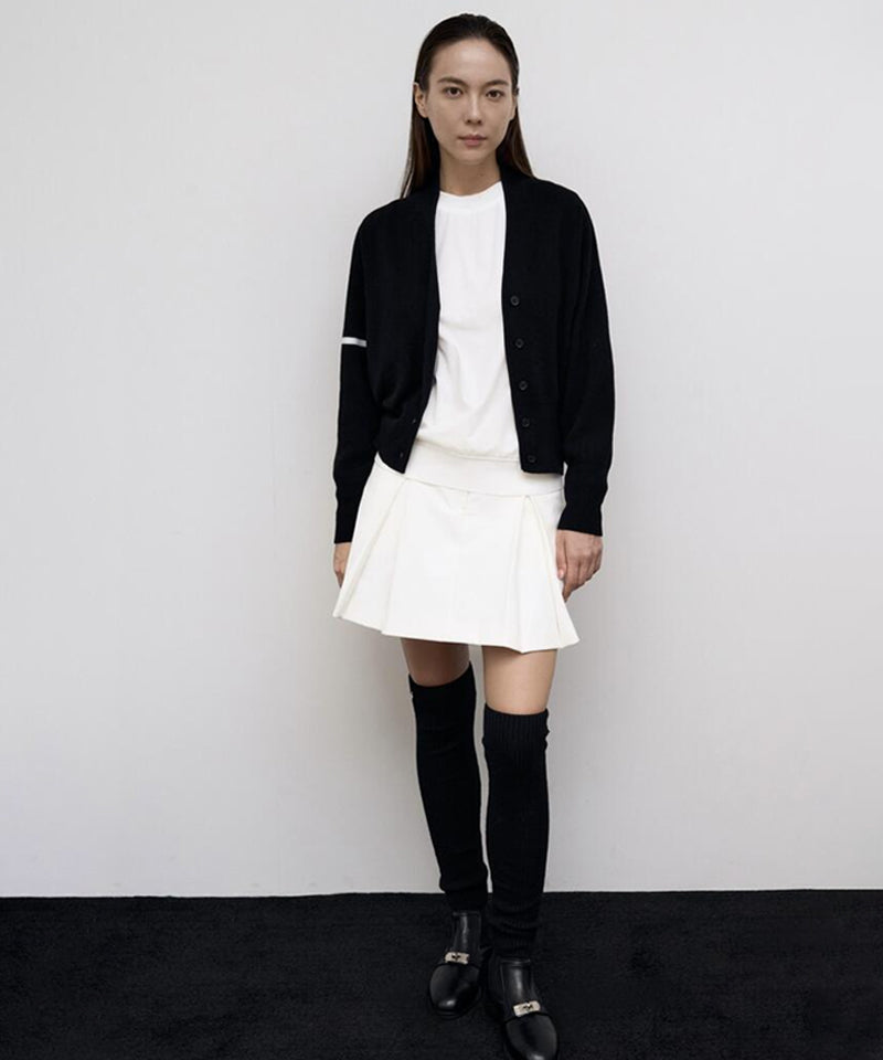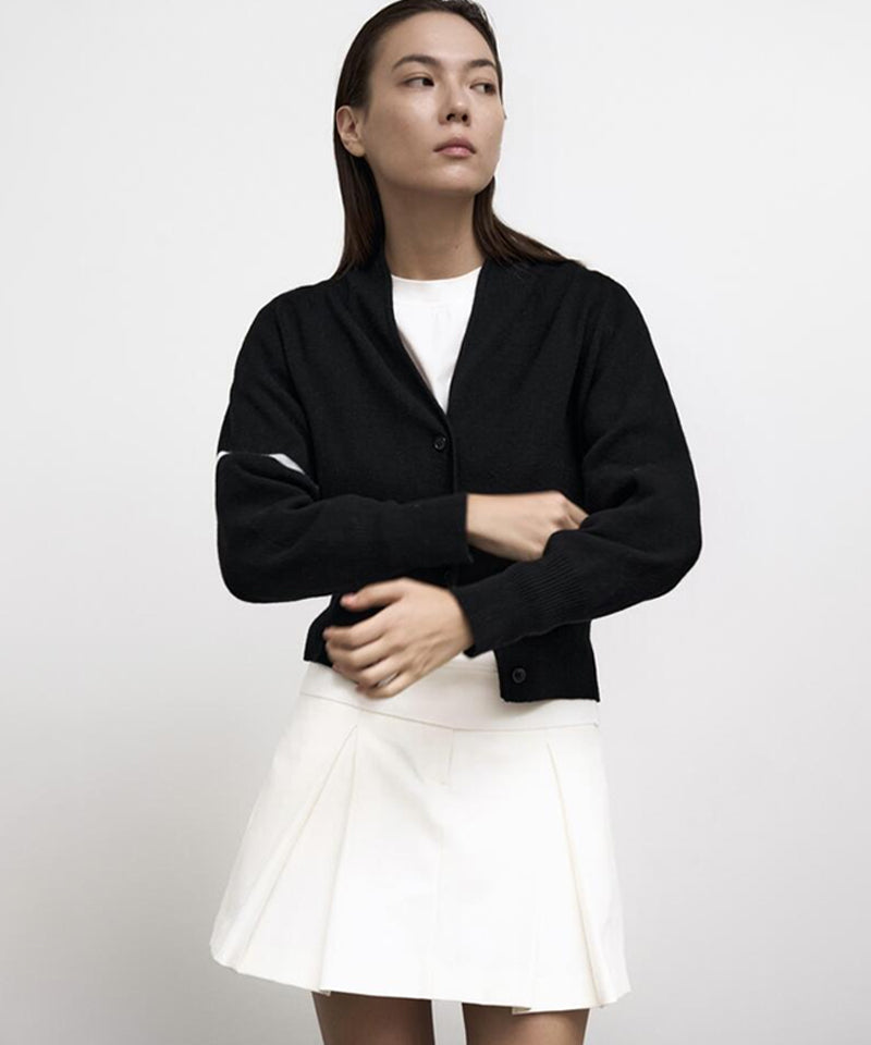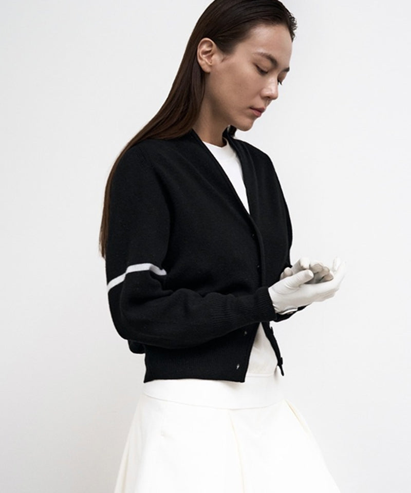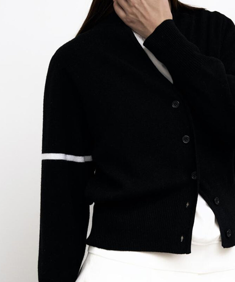 Made with our blended yarns, it's warm and great for layering this is a shawl knit cardigan that creates a comfortable silhouette. Made with wool blend yarn to provide warmth neck design that falls naturally like a shawl. A luxurious look with an overall comfortable silhouette add a stylish point with unbalanced sleeve line color scheme. Special details with Anell's unique laser engraved buttons A cardigan that matches well with various styles enhanced practicality with various coordination items.