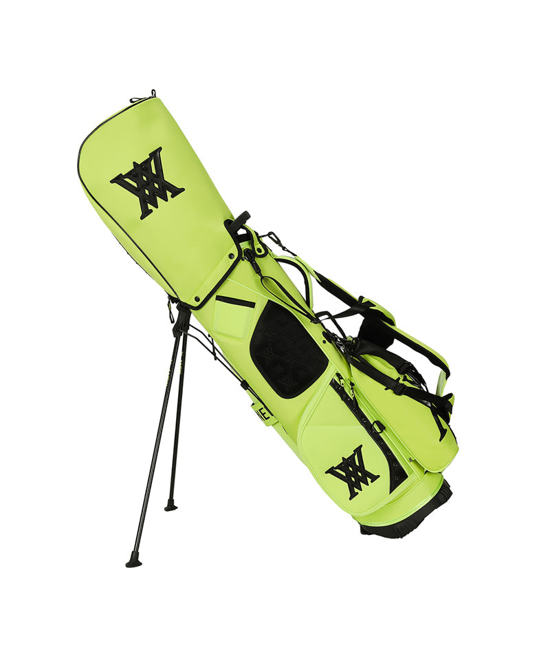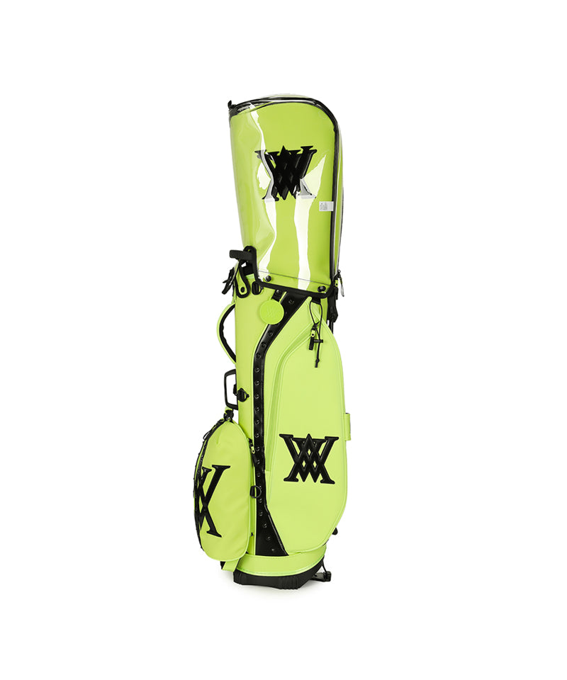 This is a versatile stand bag with a detachable shoe case. It has a subtle sheen and a mix of studs for added accents.