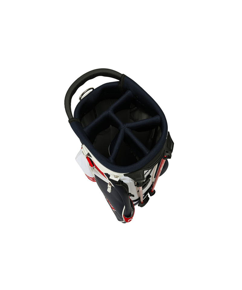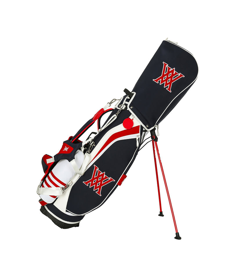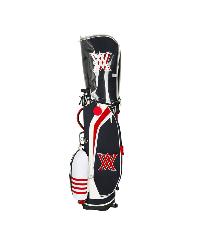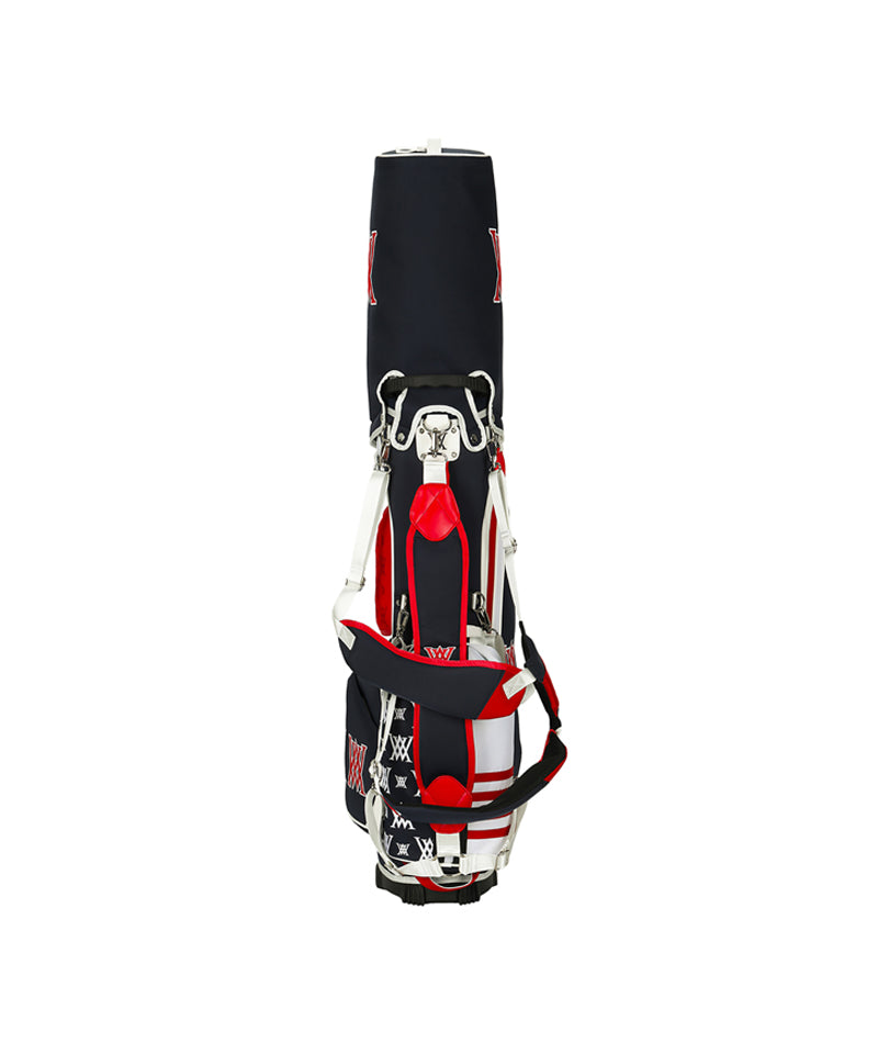 This is a versatile stand bag with a detachable shoe case. It has a subtle sheen and a mix of studs for added accents.