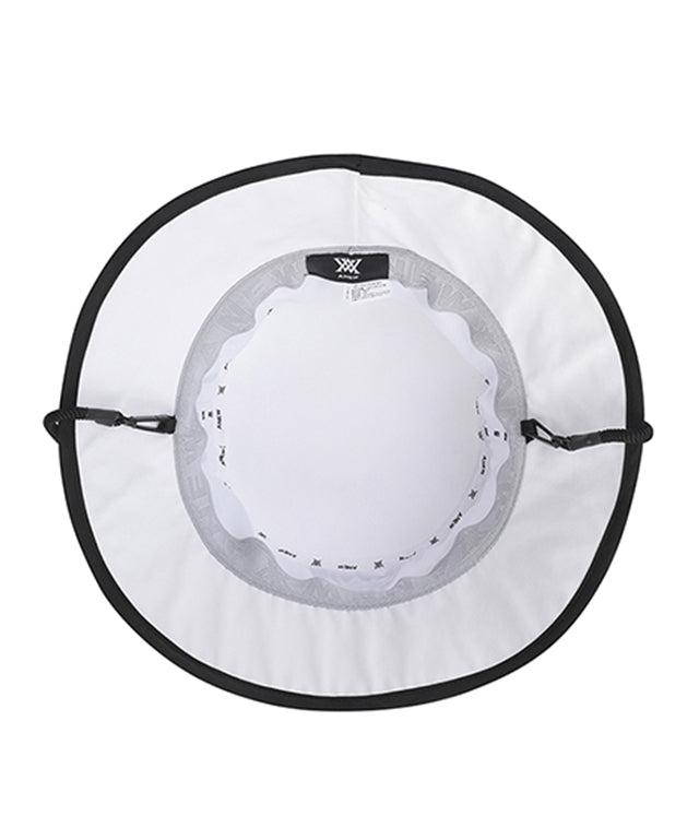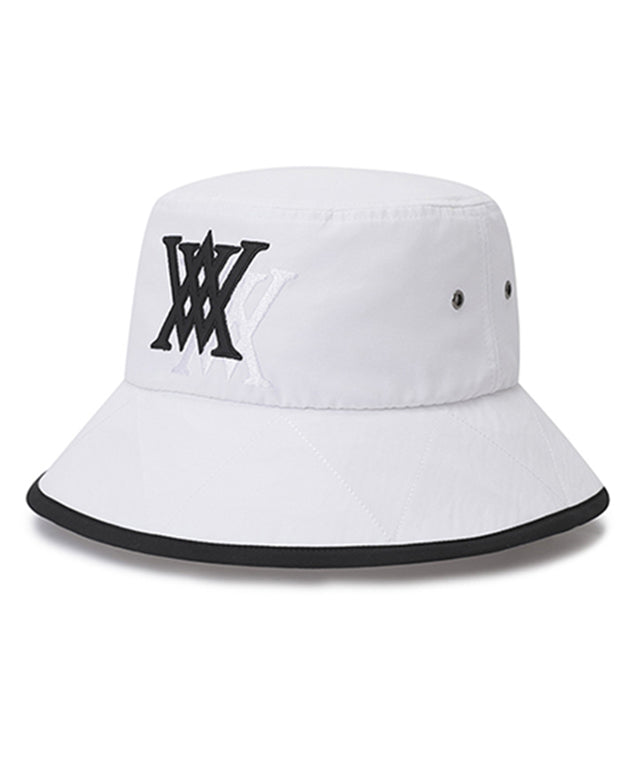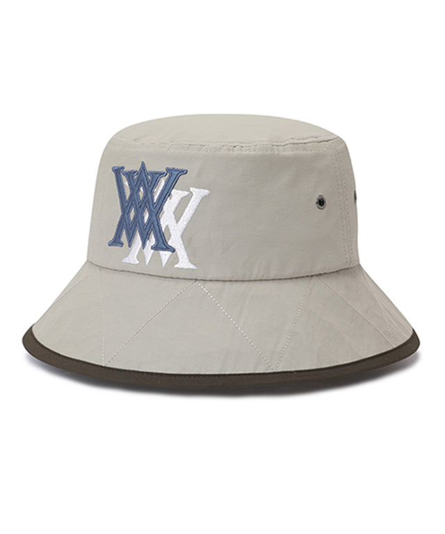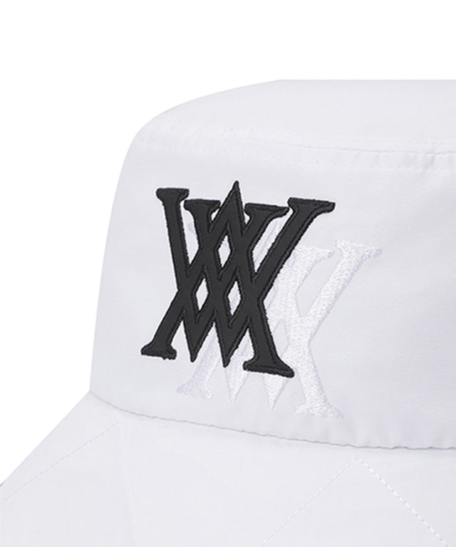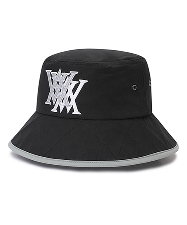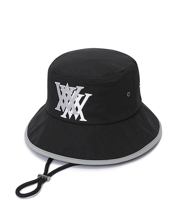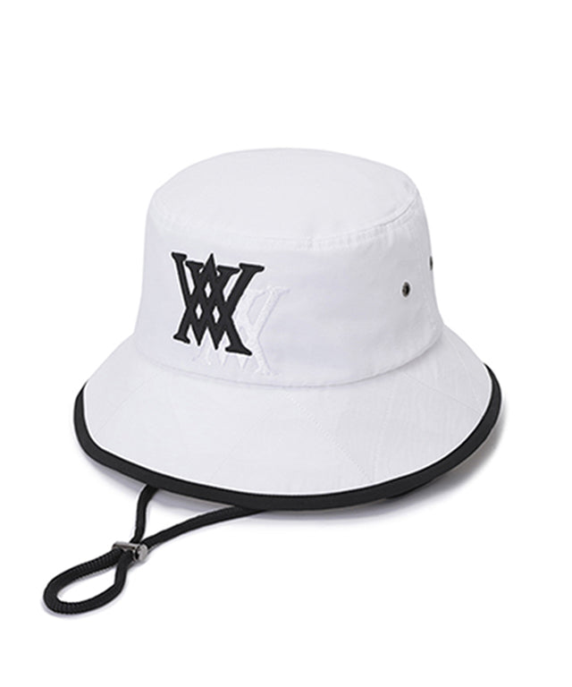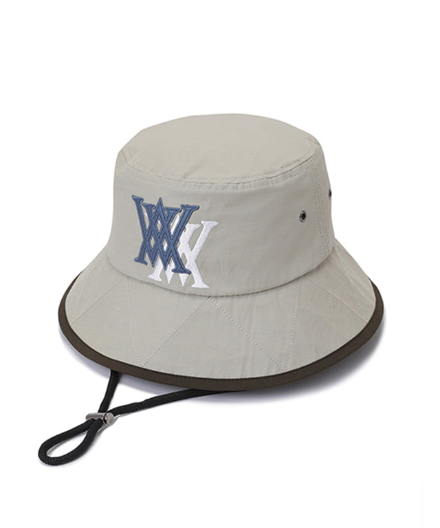 Double logo caddy bag and set-up bucket hat.The wappen logo and embroidery logo was used as the main logo. An item using Anew's signature point, zigzag embroidery. Practical with a detachable chin strap