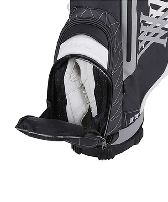 It is a stand bag with Anew’s unique curved camo pattern, which expresses a strong and soft feeling in each color. Embo-type material with good touch. Diagonal stitch points express a luxurious sense of volume. Curved zip pocket detail. Durable and versatile storage structure. A handle with a nice sense of drawing and storage space for golf clubs divided into 5 spaces.