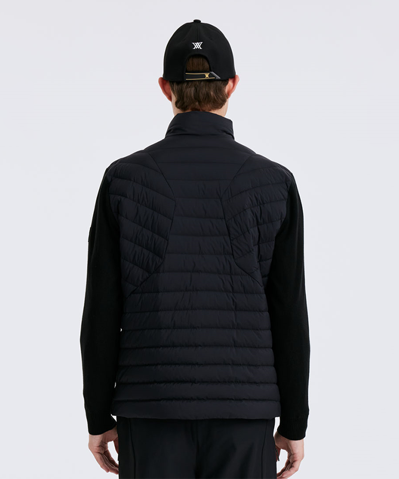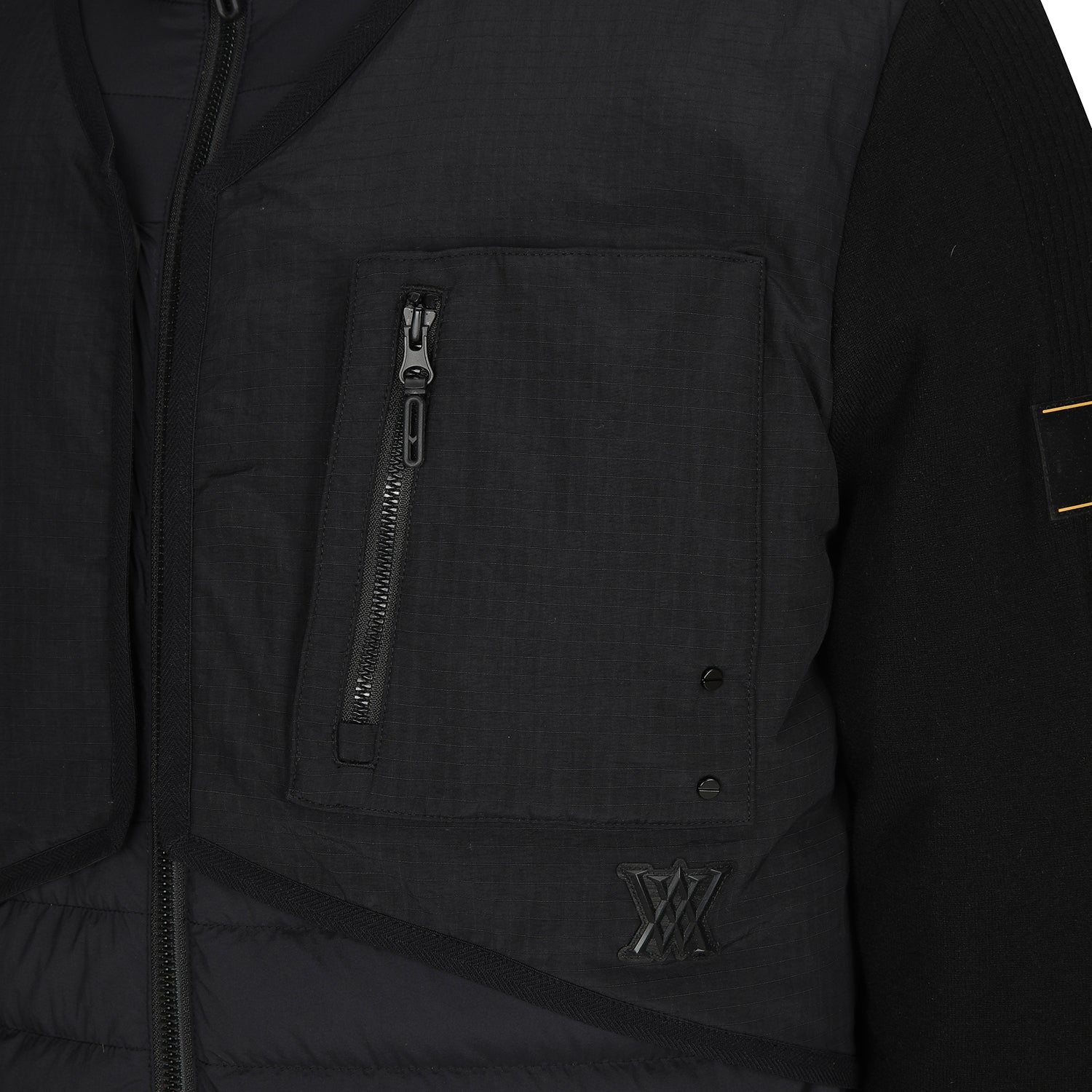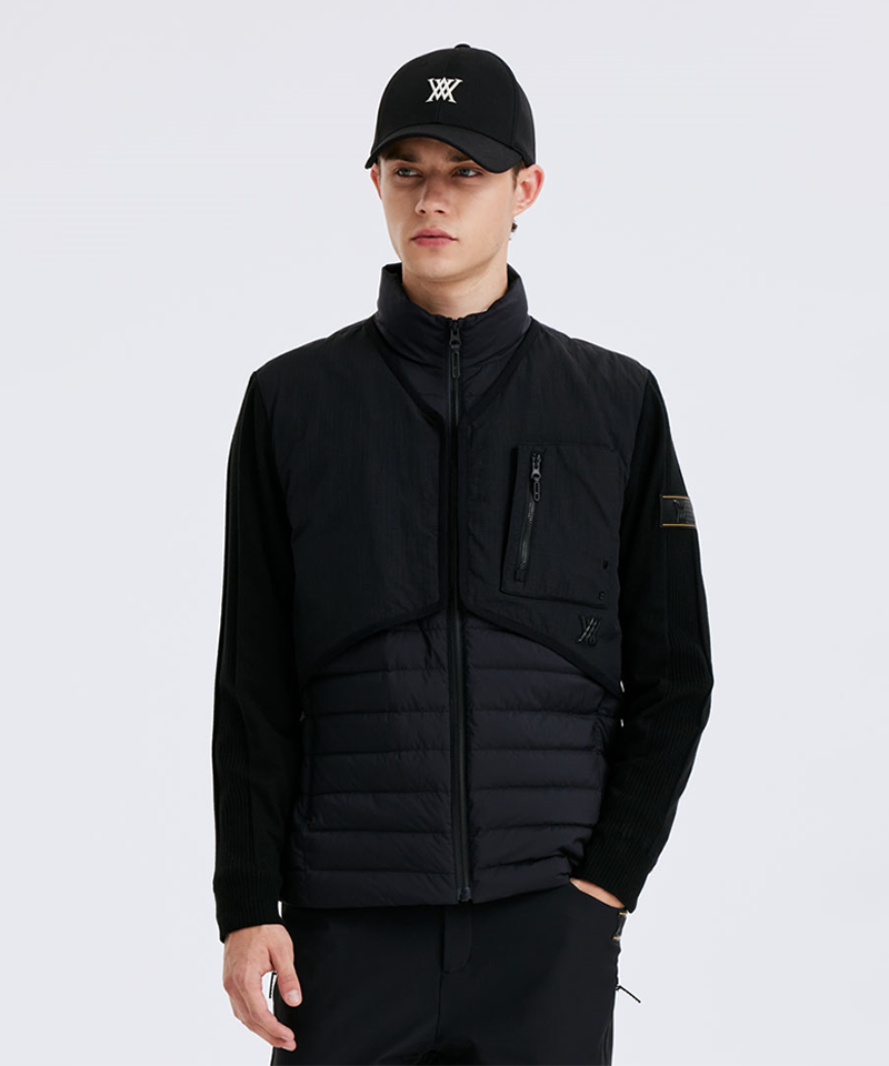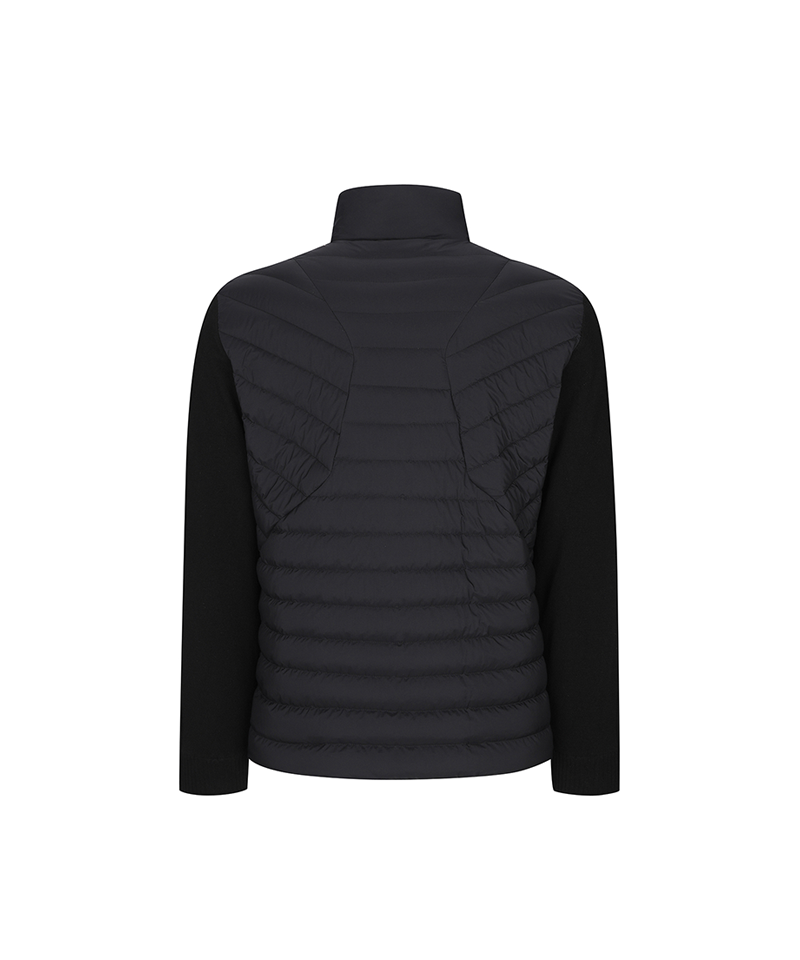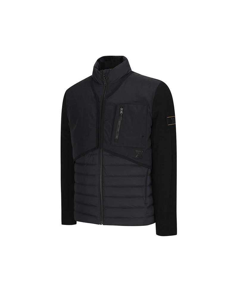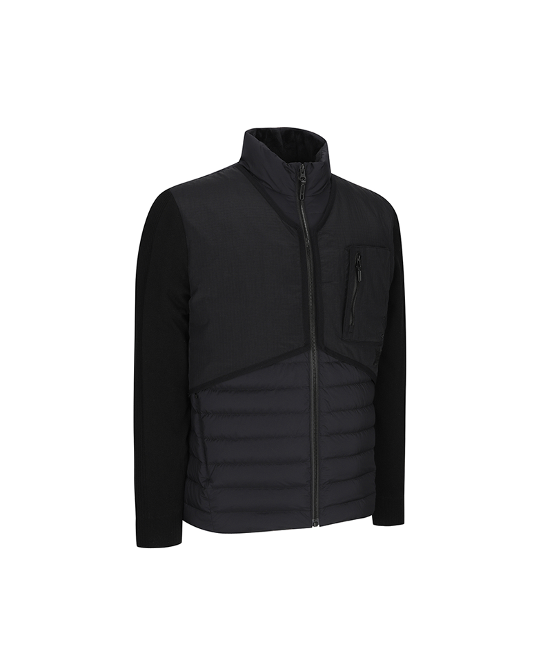 This is a sweater hybrid jumper knitted with a wool blend yarn that has good thermal insulation from the "Performance" line. It has a utility-mood flap on the front and out pockets, making it easy to store various items. It has excellent thermal insulation using goose down and thermal lining, making it a suitable item for various outdoor activities.