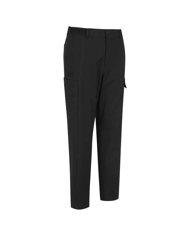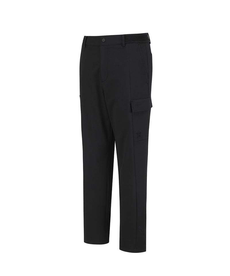 These are summer cargo pants made with twill fabric. The bands on both sides of the waist are color-blocked for a comfortable fit, and the side pockets and tea holder details are a special feature. The loose, comfortable fit allows you to wear them comfortably and coolly.