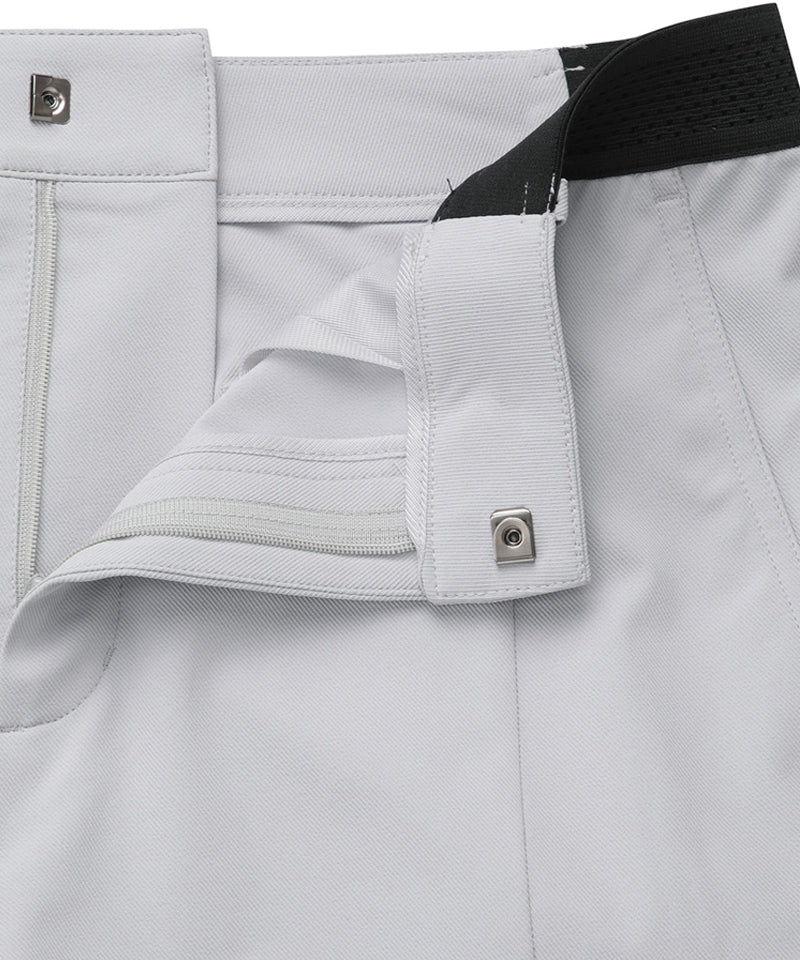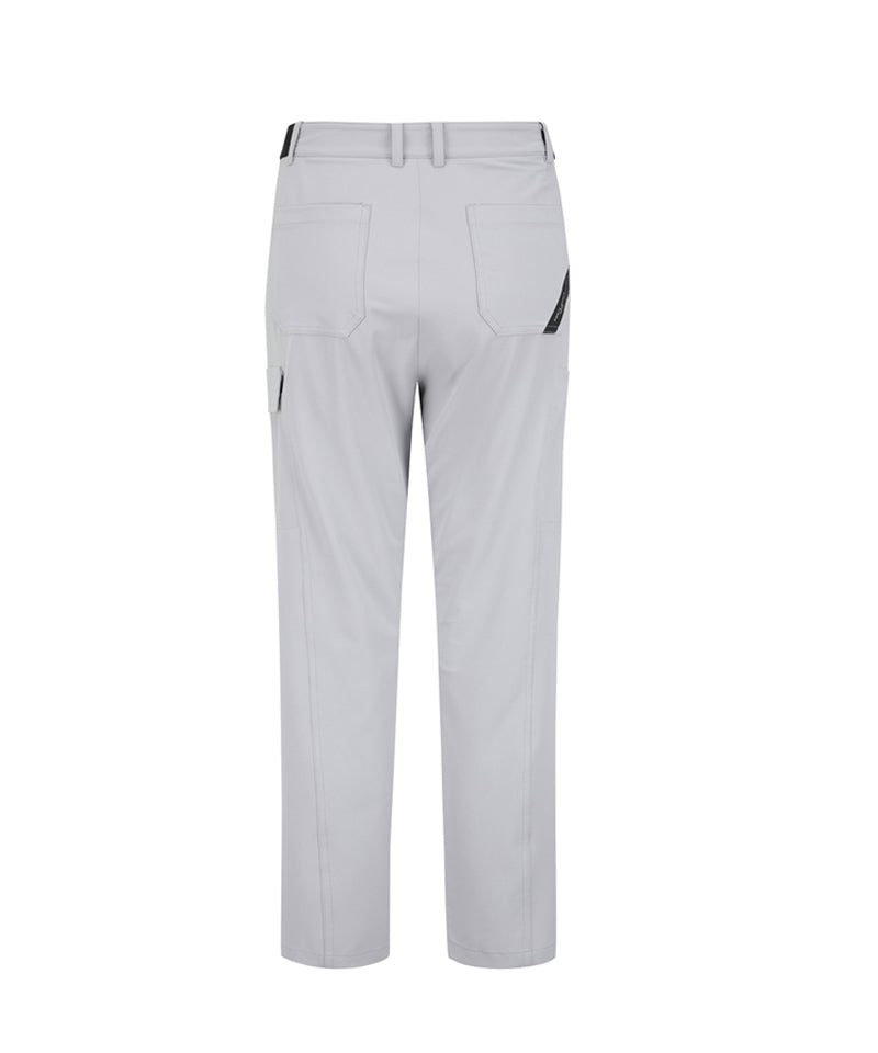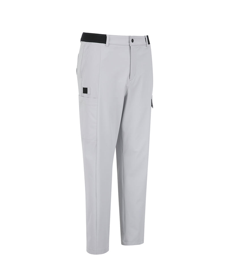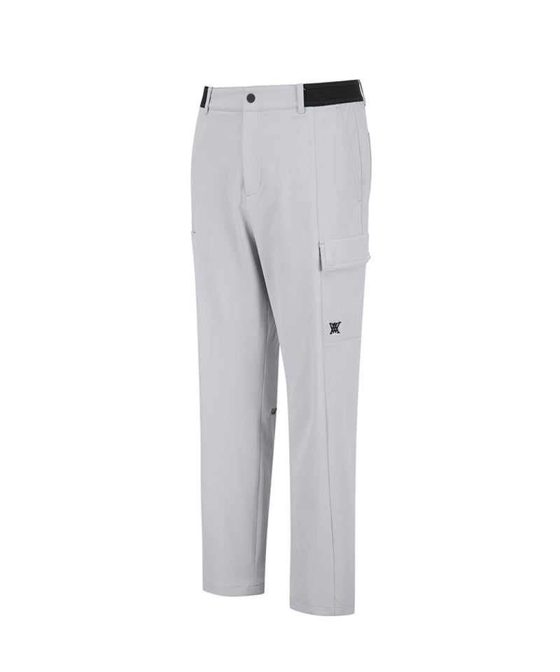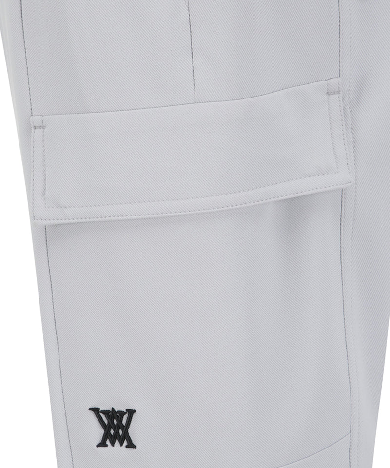 These are summer cargo pants made with twill fabric. The bands on both sides of the waist are color-blocked for a comfortable fit, and the side pockets and tea holder details are a special feature. The loose, comfortable fit allows you to wear them comfortably and coolly.