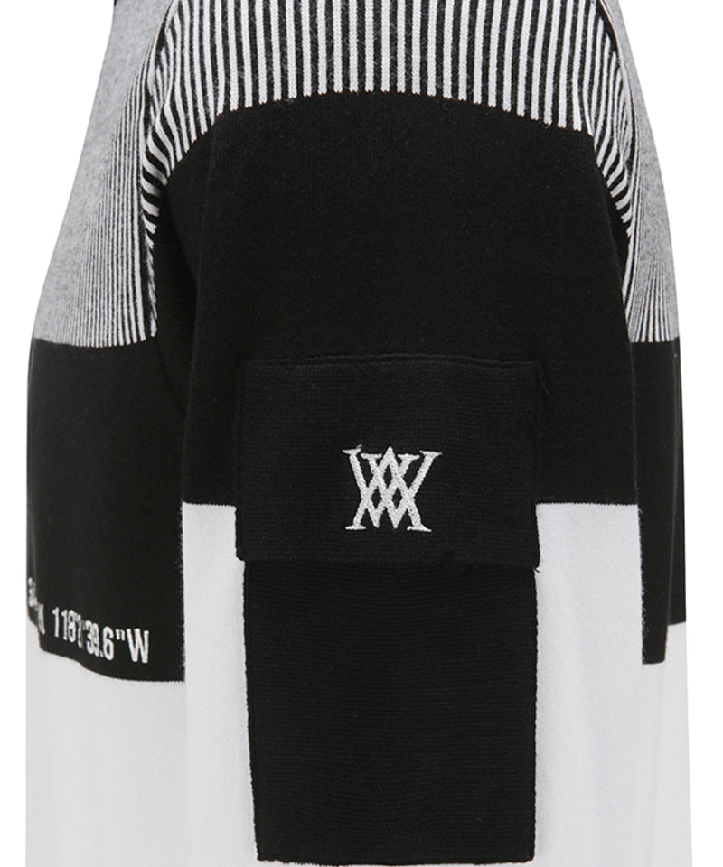 This is a men's spring signature color blocking long-sleeved knit that is simple yet adds a point with color blocking. It is a top that goes well with any bottom while adding a point with the Anyu logo embroidery on the left chest and left sleeve. And it is made of soft yarn, so it is an item that can be worn comfortably even on a daily basis.