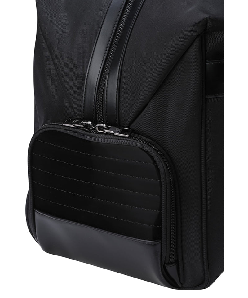 The front and back panels feature embossed logo detail bands, and one side of the zipper pocket can be used as a shoe pocket and the other side as a small separate storage space. The included pouch-sized laundry bag can be used to store clothes or personal belongings.