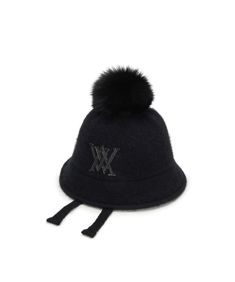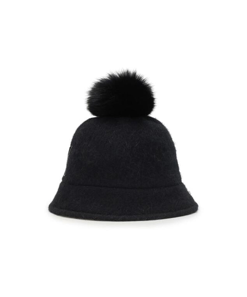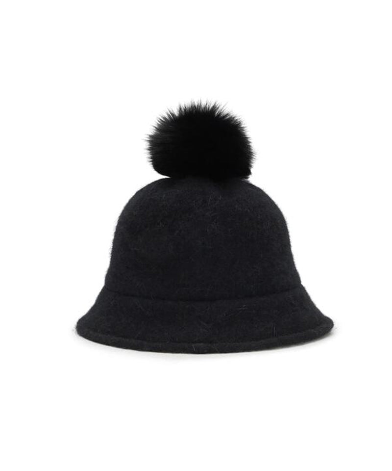 This is an angora bucket hat. It is soft to wear with a knit chin strap and is a product with a point made using enamel polyurethane material. It has a detachable bell so you can wear it according to your preference.