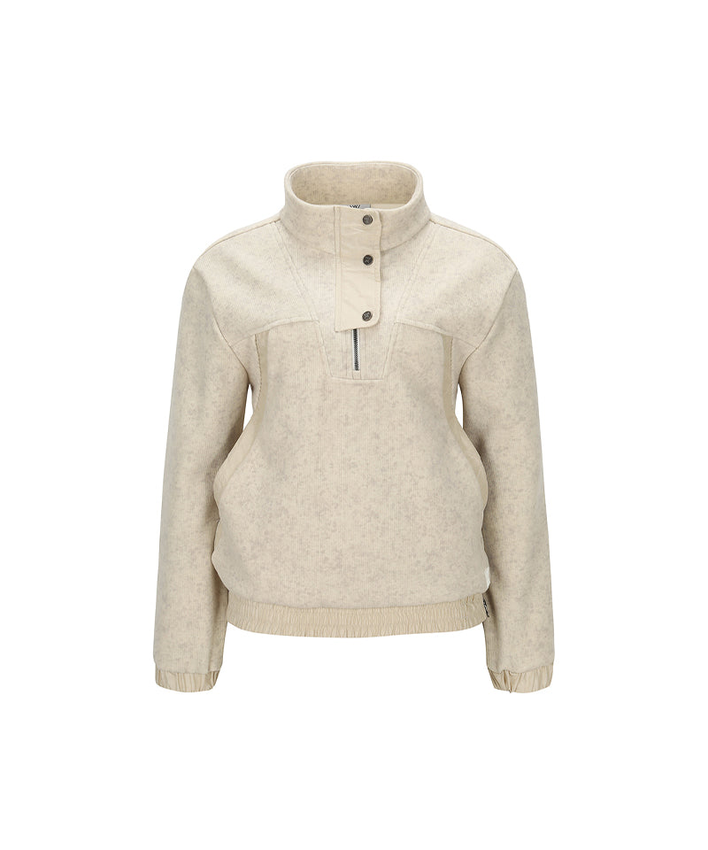 Women Half Zip-Up  Long sleeve T Shirt - Light Beige