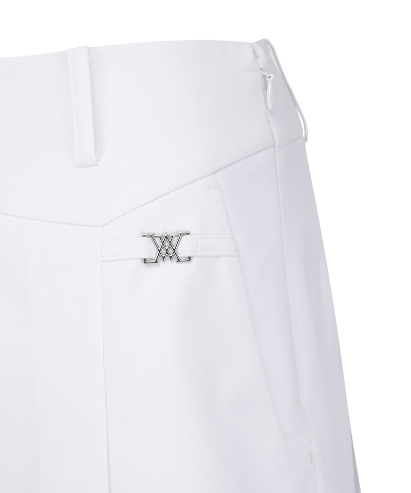 This is a pleated skirt designed with a diagonal cut at the waist. This skirt has a metal logo on the lower part of the waist as a focal point, and is transformed by mixing left and right pleats and gathers when worn. This is a signature item that can be comfortably layered not only for rounding but also for everyday life.