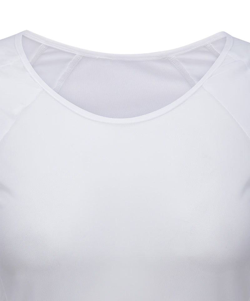 It is a very good item to wear as a t-shirt inner because the breathability of the mesh and cool fabric is good. There is a logo transfer on the right sleeve,