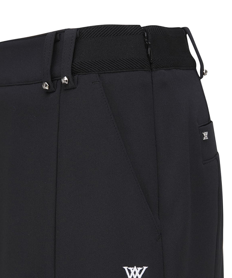 The vertical cut lines on both sides break the line of sight and provide a body-shaping effect. The signature studs of Anew are added to the belt loops and cuts, emphasizing the luxuriousness of this item. It is easy to coordinate with tops of various colors.