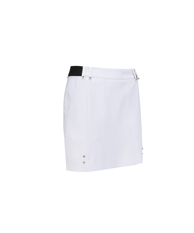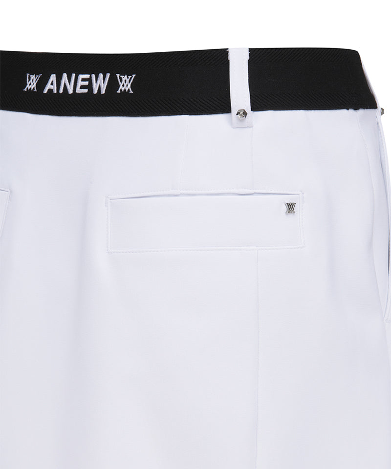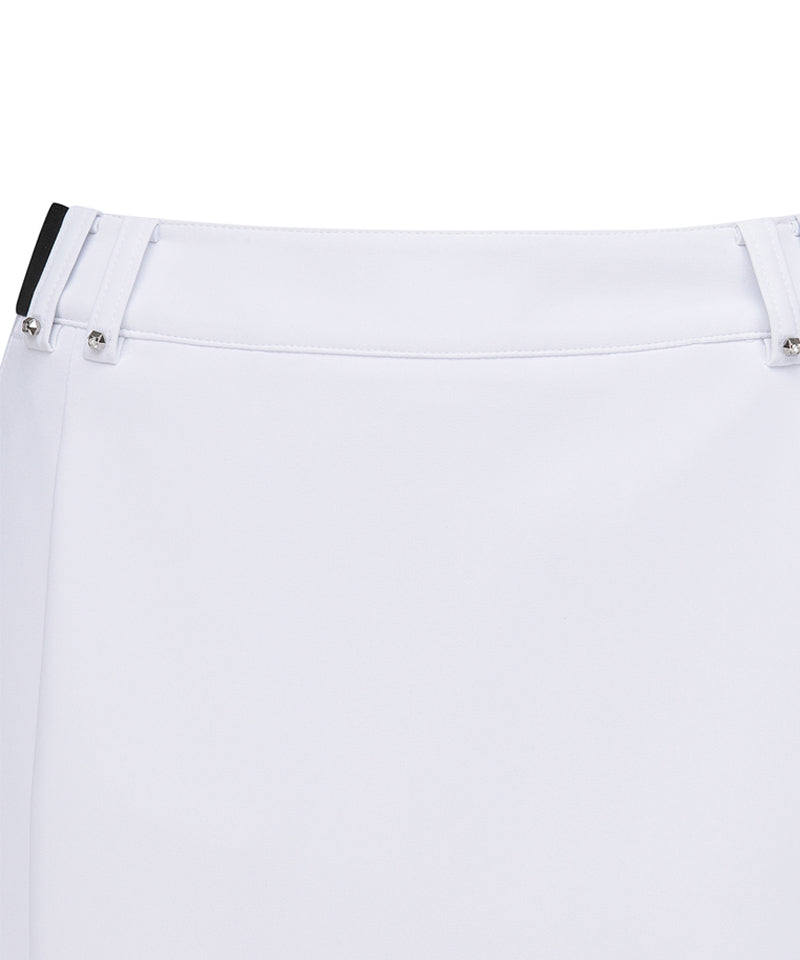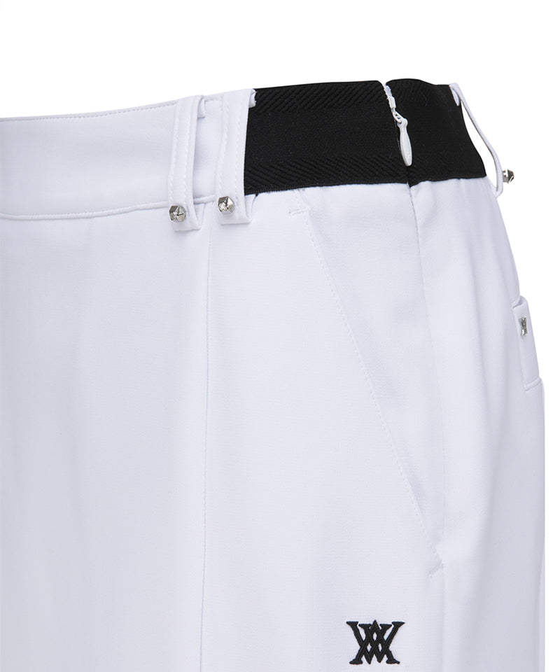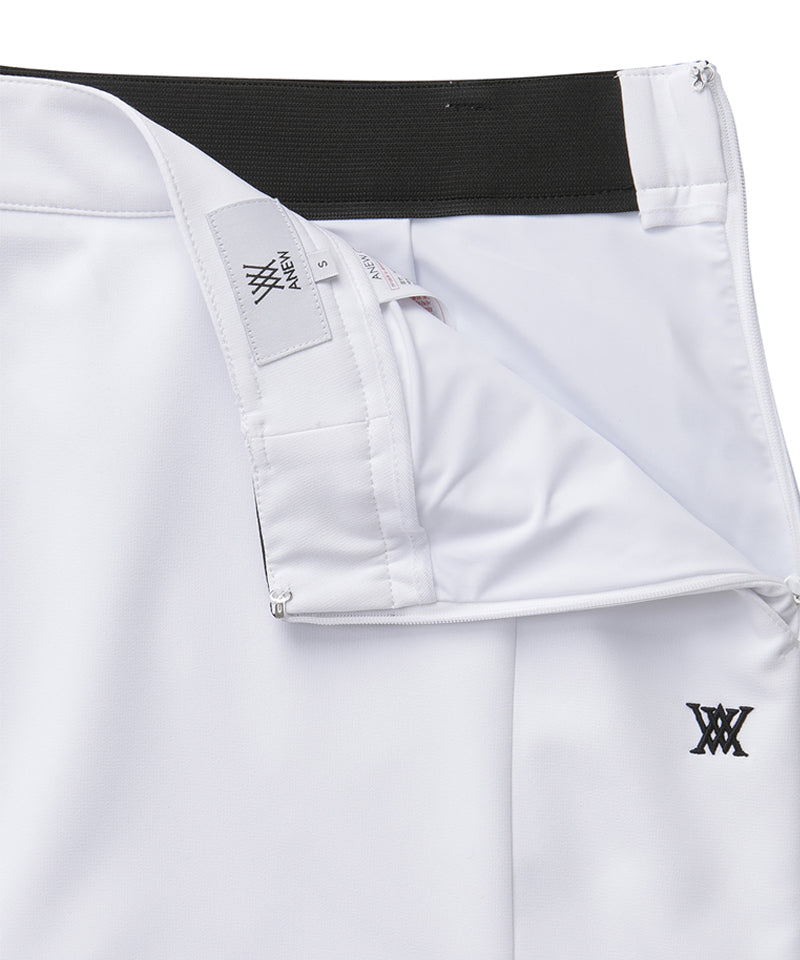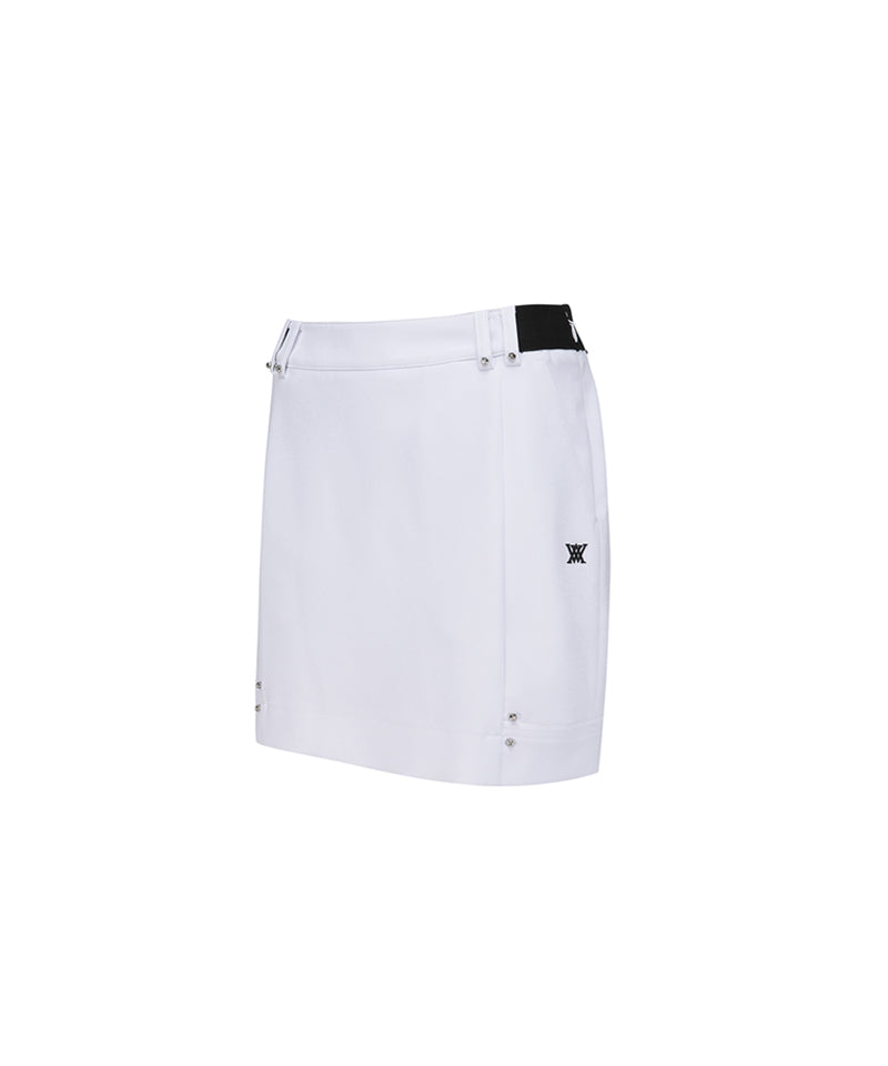 The vertical cut lines on both sides break the line of sight and provide a body-shaping effect. The signature studs of Anew are added to the belt loops and cuts, emphasizing the luxuriousness of this item. It is easy to coordinate with tops of various colors.