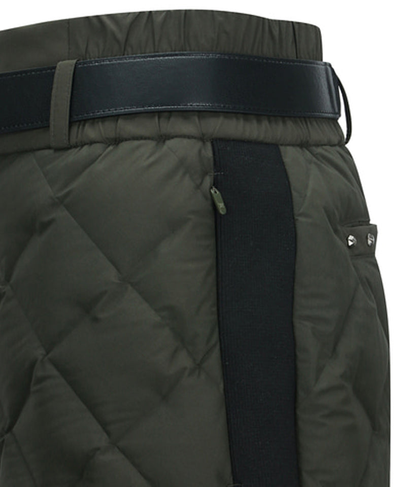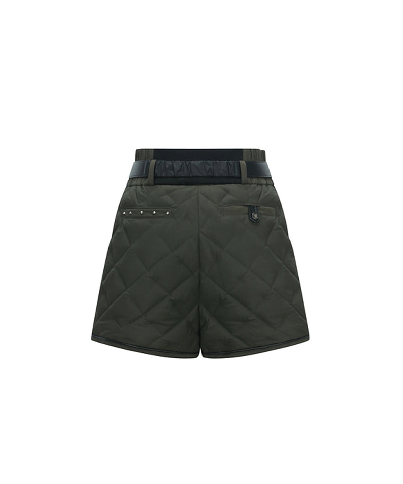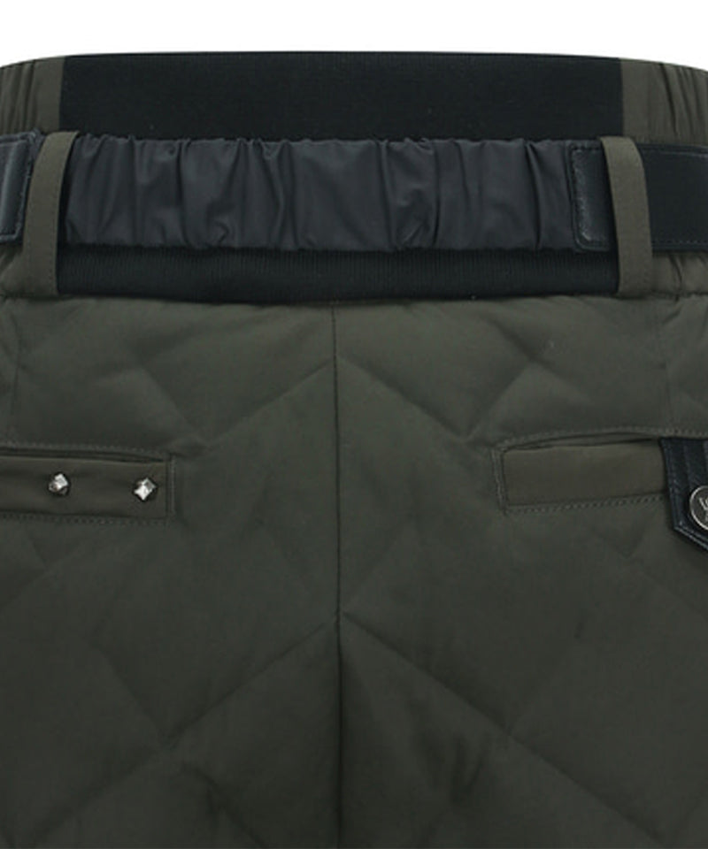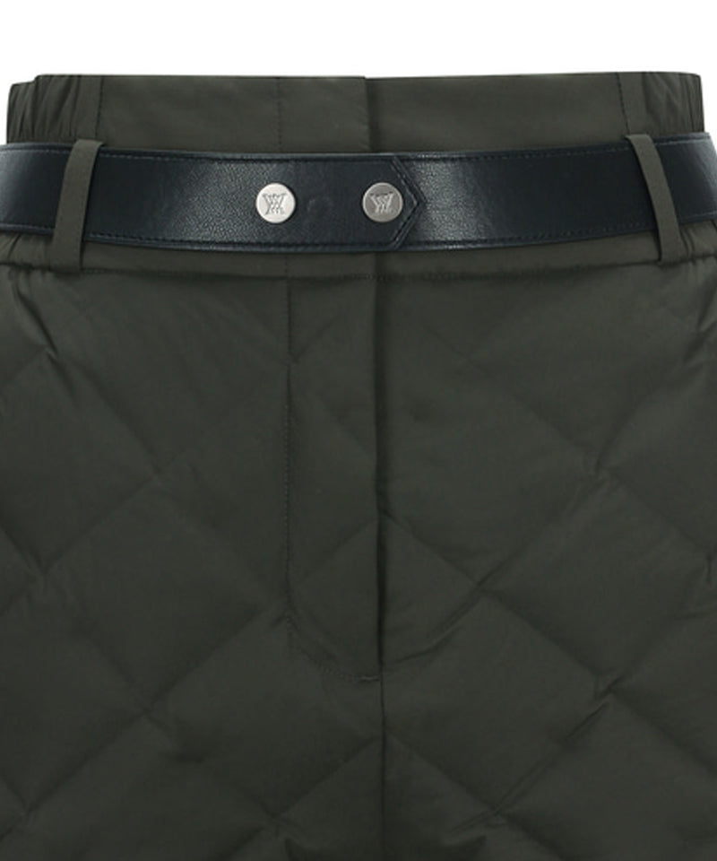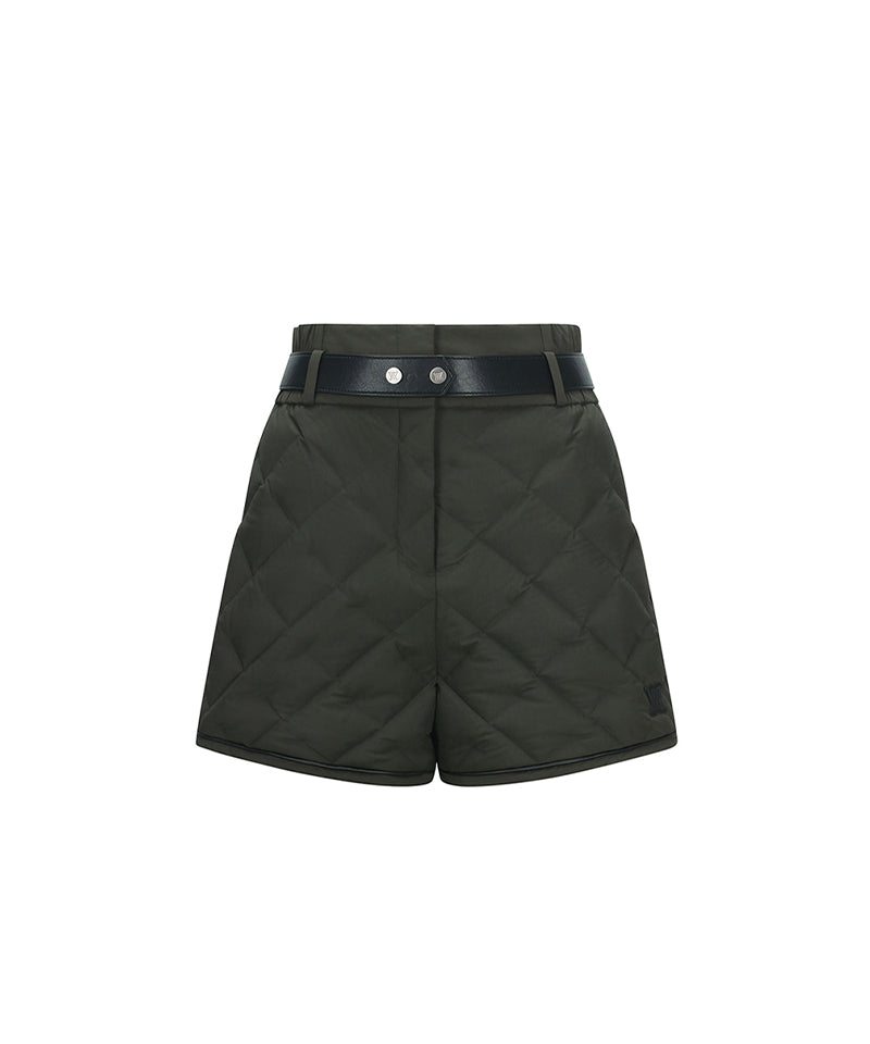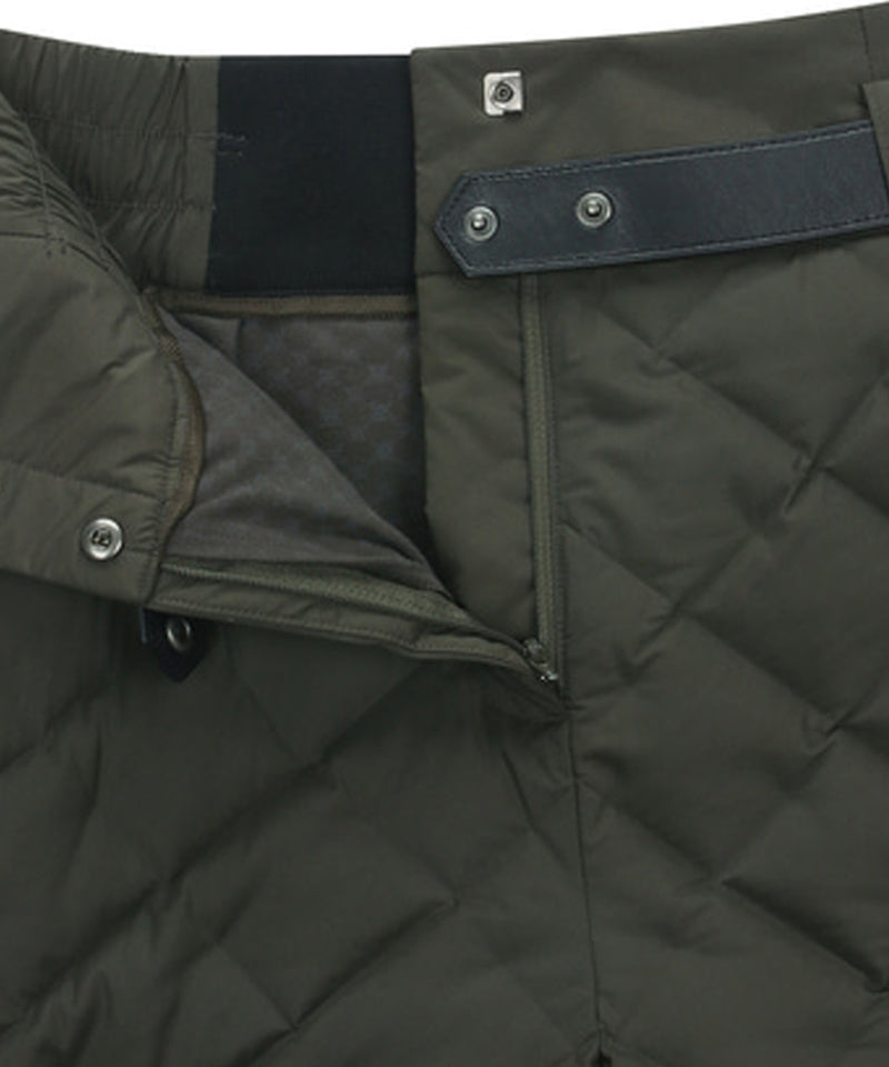 These are tube down half pants with goose down. This is a set-up item planned as a set-up for AGEWWDV02, and it is a set-up composition that can be worn as a jumpsuit when worn as a set-up. The pants can be worn without a separate belt as the belt made of leather fabric is inserted at the waist, and there is a leather-like detail point at the bottom of the back pocket at the hem.