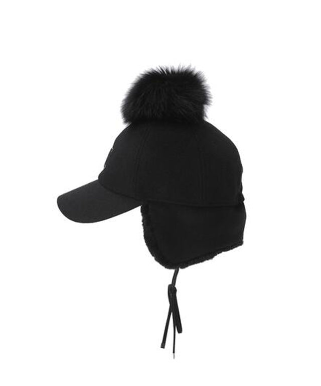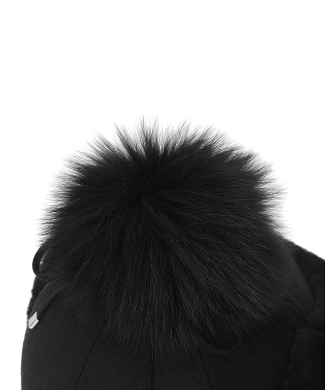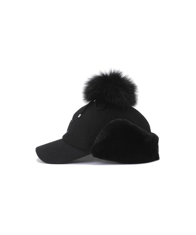 A winter ball cap accented with a wool texture mix. Real fox fur adds femininity, and the earrings make it perfect for rounding in the cold winter. Easy product.