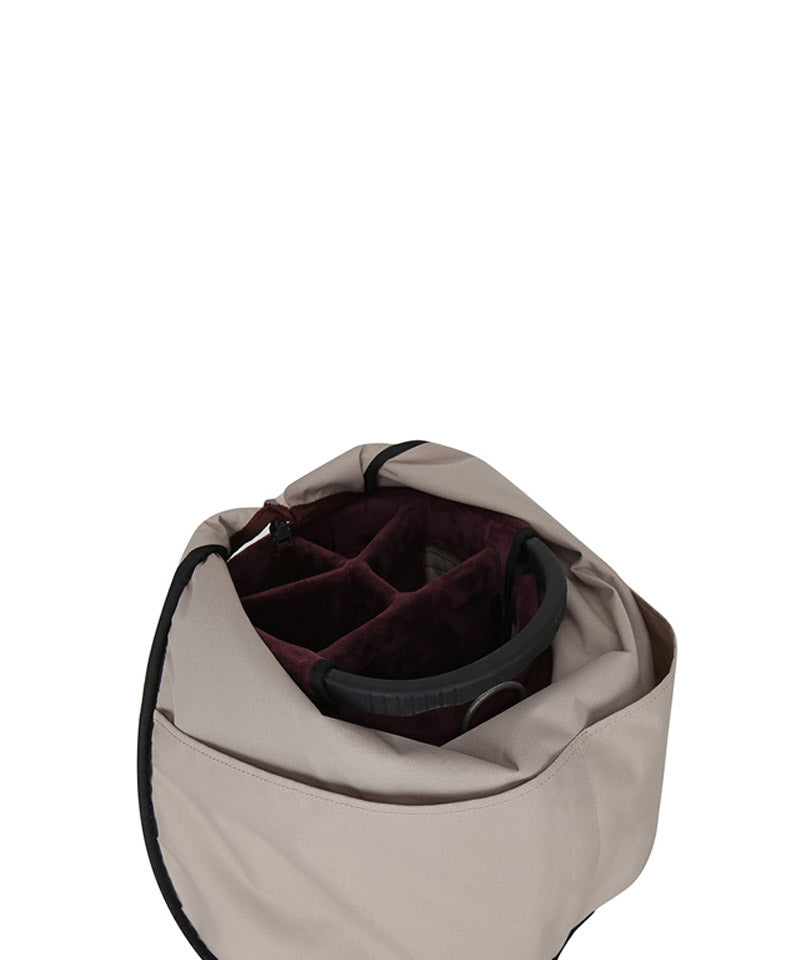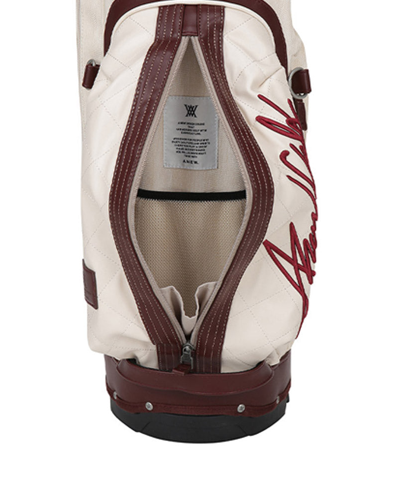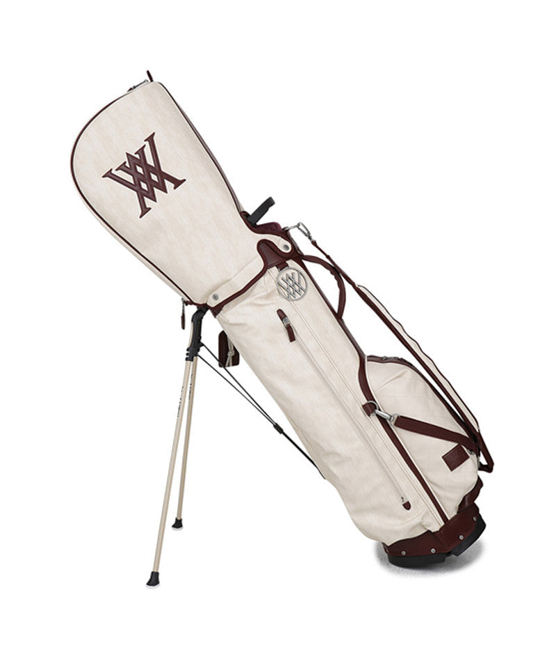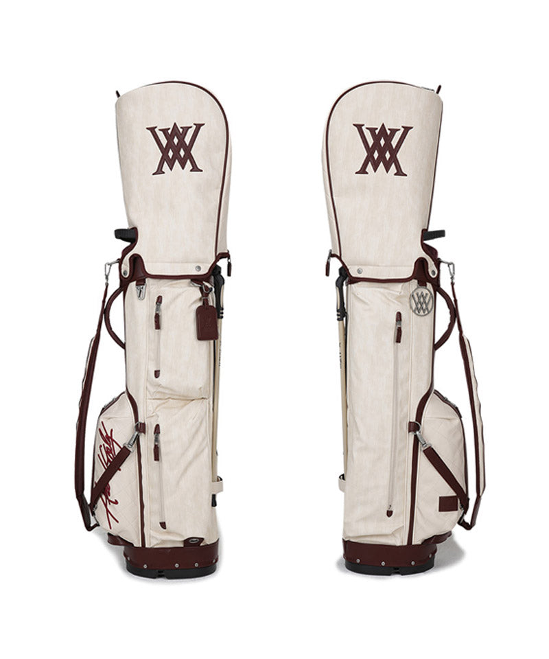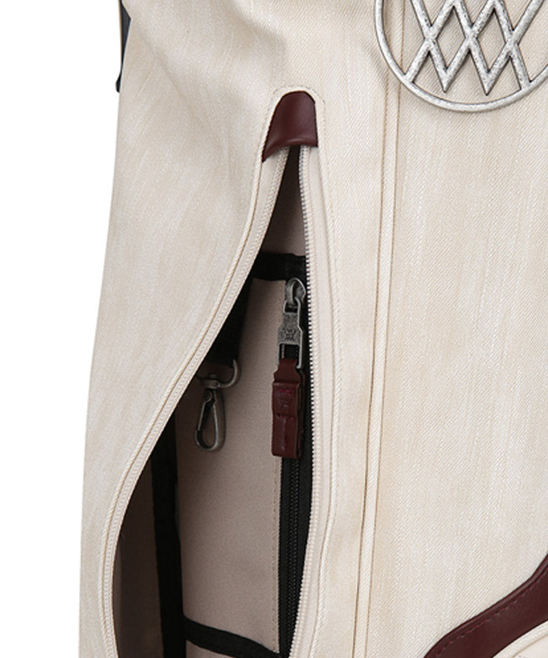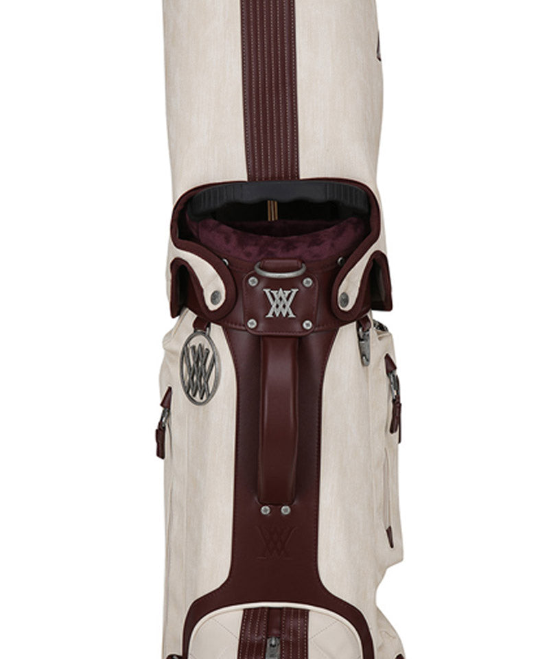 Antique stand bag with a vintage mood antique plating with a cracked feel gives it a luxurious and vintage feel. Front pocket points feature voluminous logo embroidery and logo patches. Stand bag with various storage capacities.