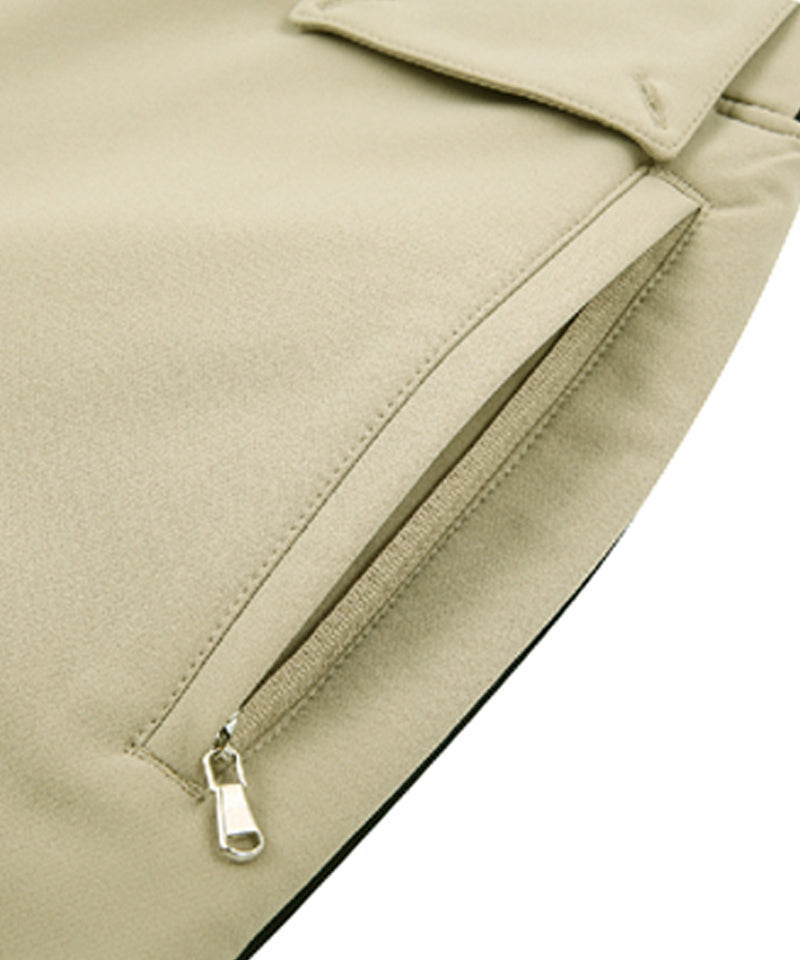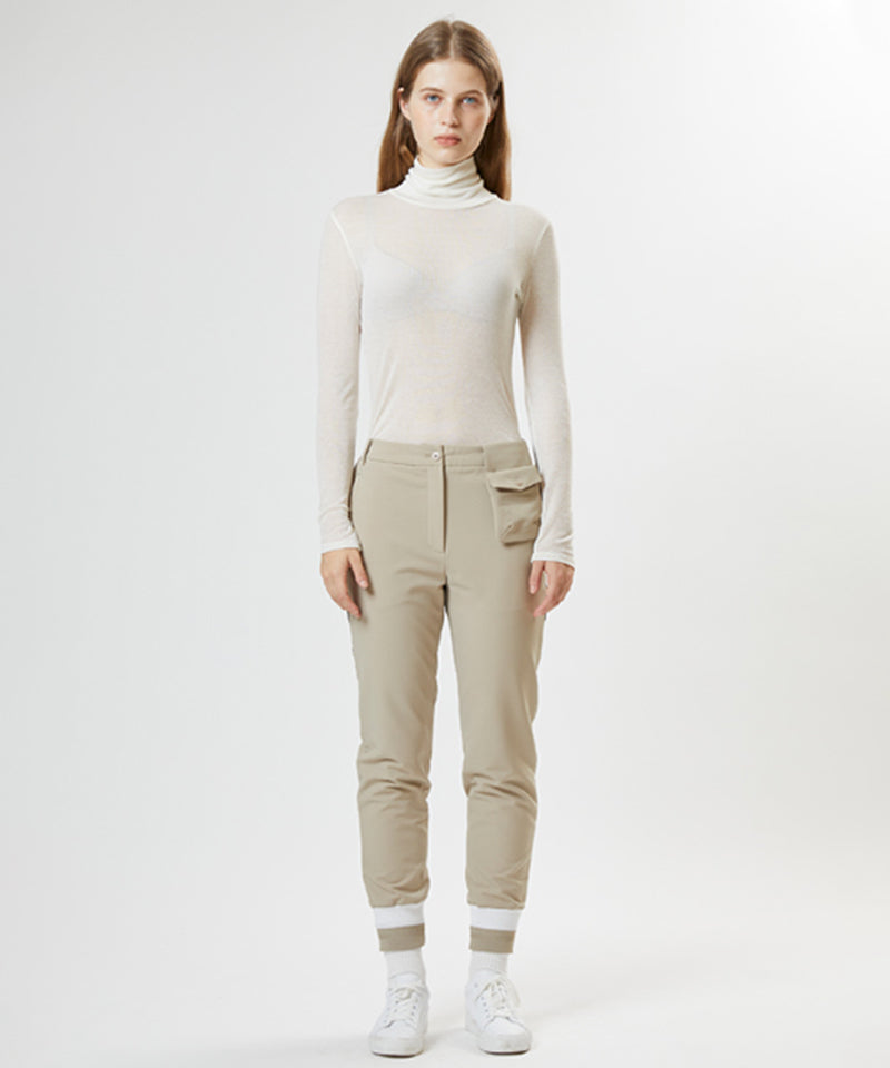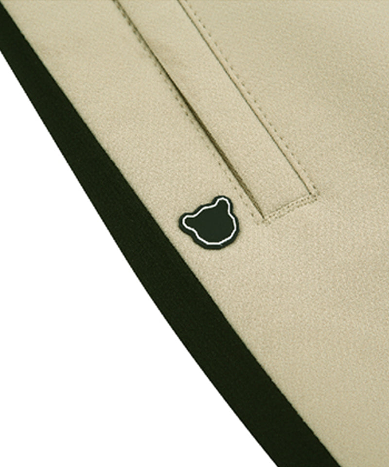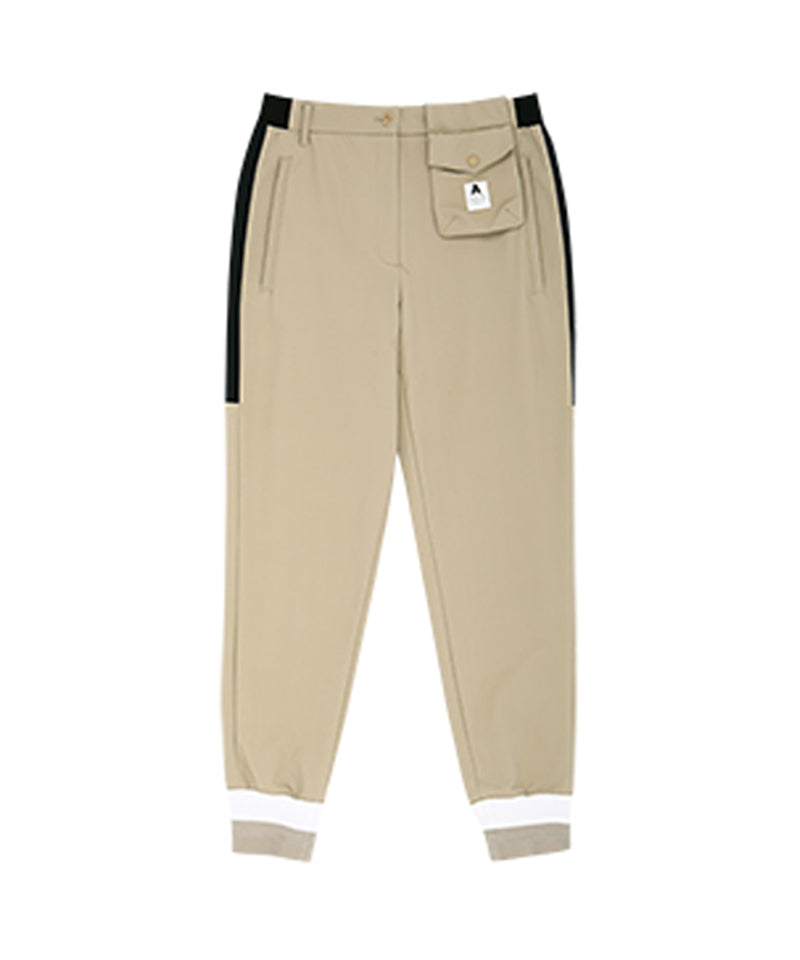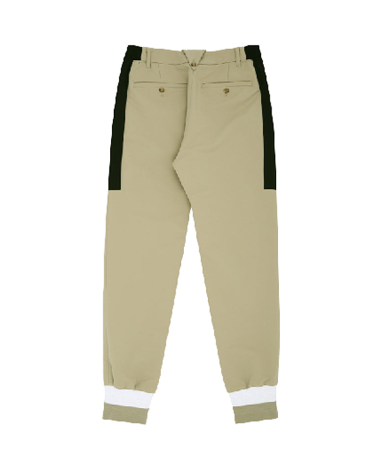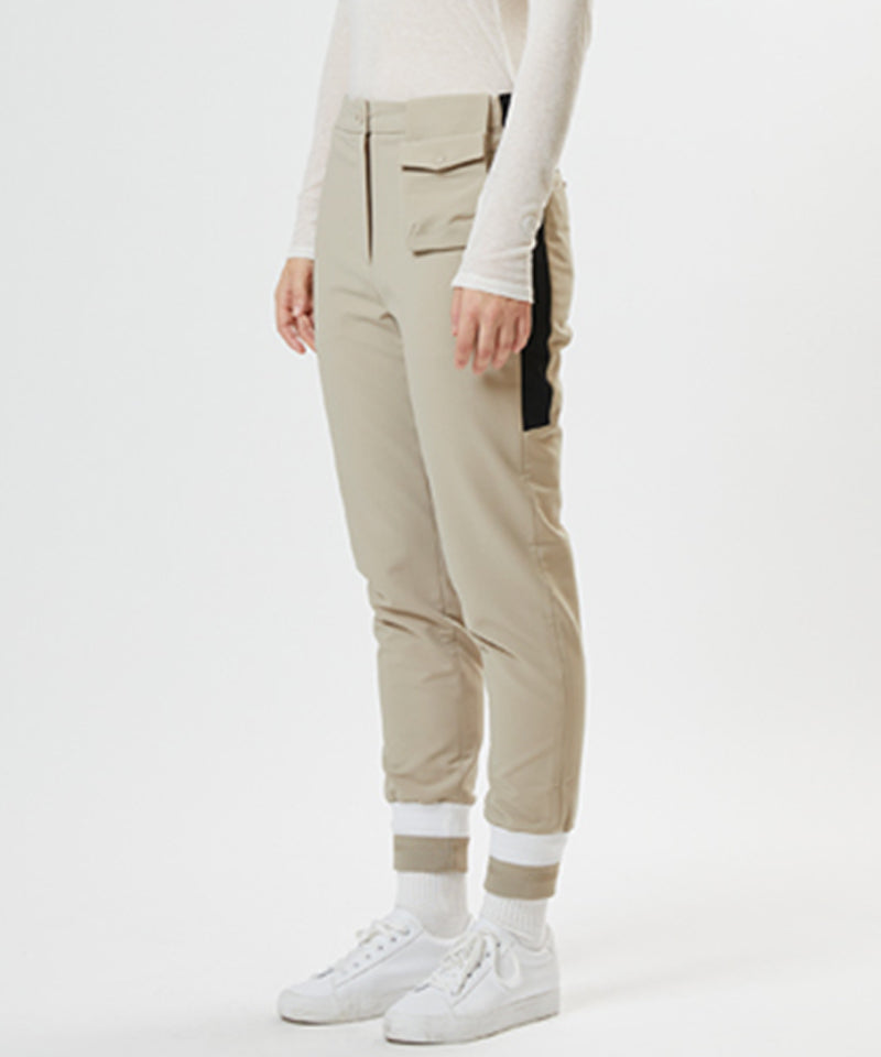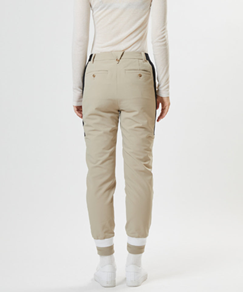 These are jogger pants with a standout color scheme. The knit band at the bottom blocks the wind when worn and holds the ankles securely when active. It has a good, basic yet sporty design that can be used for various purposes during sports activities or in everyday life this is a great item to wear comfortably.