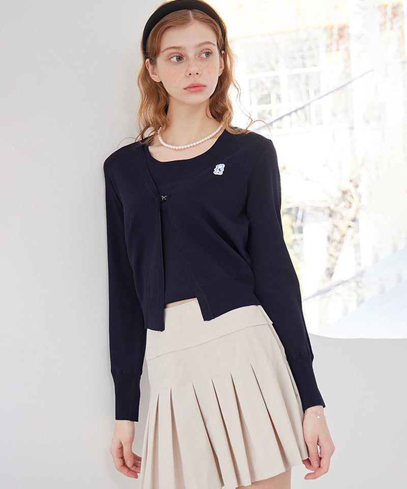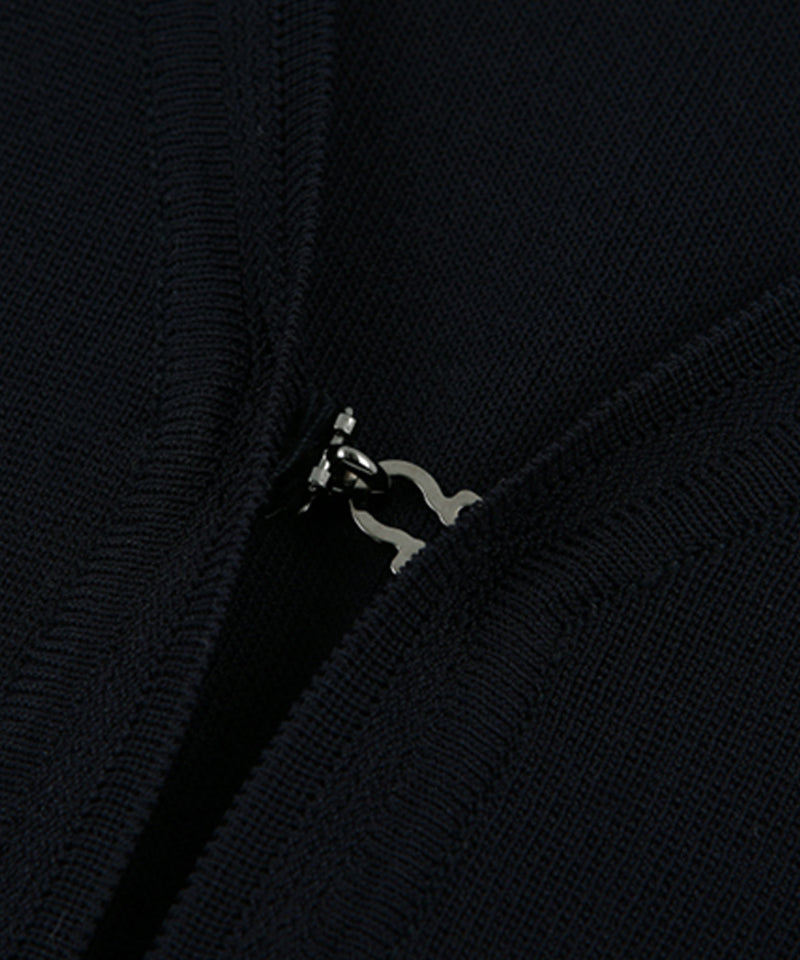 Not only can you wear it daily in spring and fall, but you can also match it anywhere on the field. This is an essential basic V-neck item that is easy to wear. The single piece with a drop can be fixed with a snap in the dropped state or on the side neck. Two-way styling is possible. Glossy with added texture and logo engraving here and there