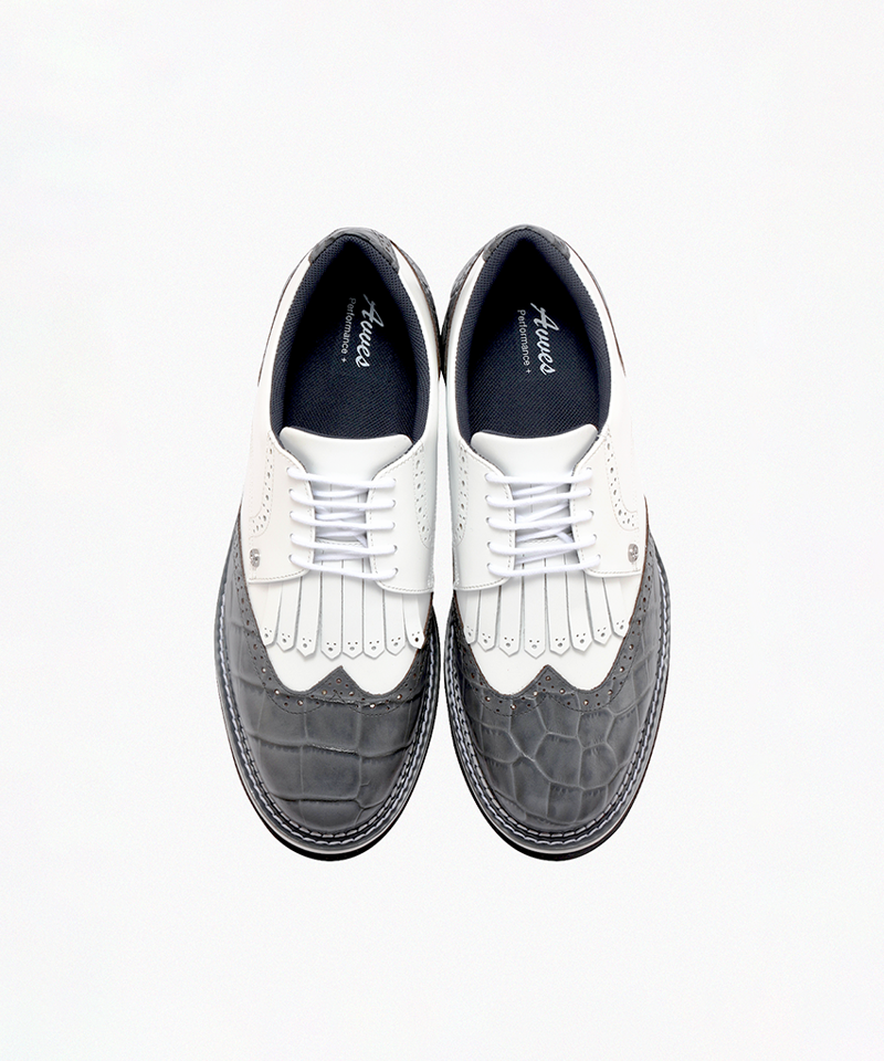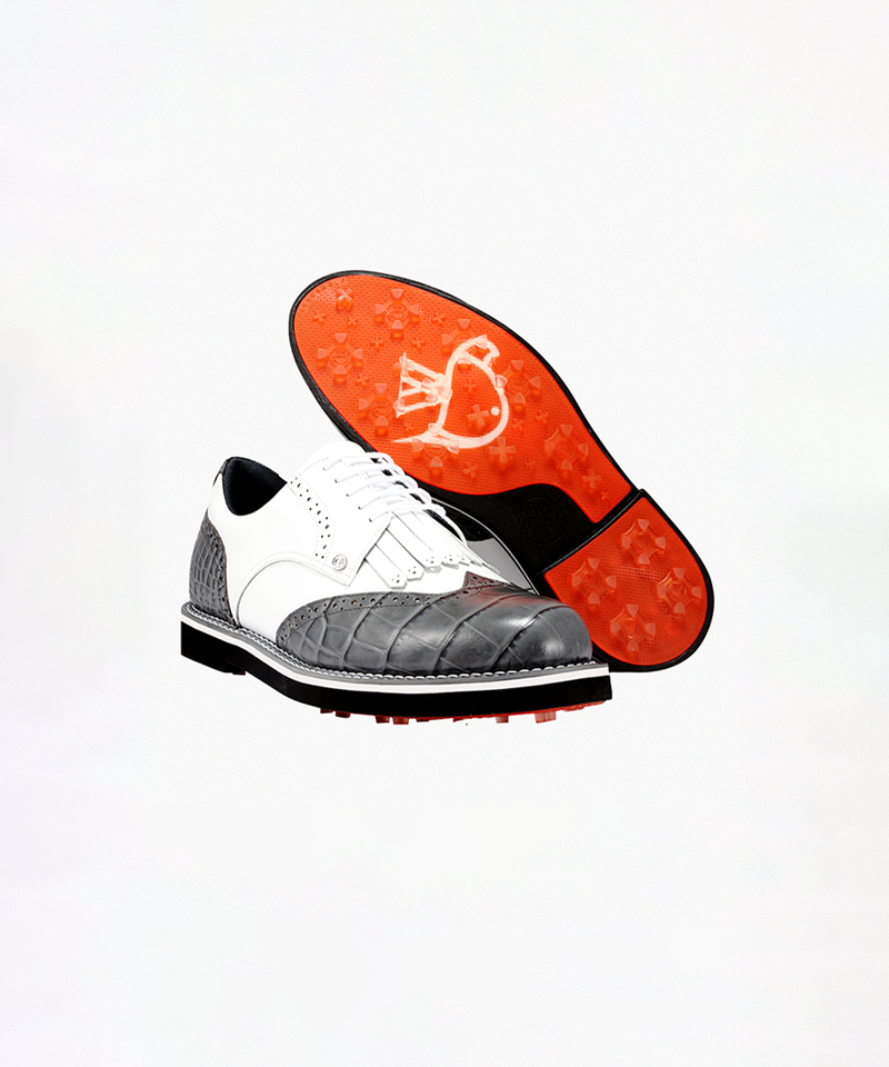 Crafted from premium calfskin leather, the shoes feature a distinctive croc pattern inspired by the vibrant colors of tropical birds. The water-resistant finish ensures durability, while the specially engineered outsole offers superior grip and stability, ideal for the perfect swing.