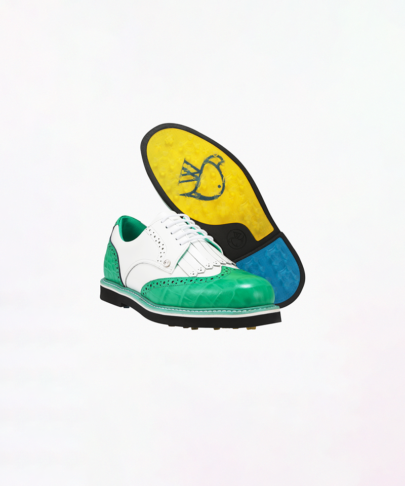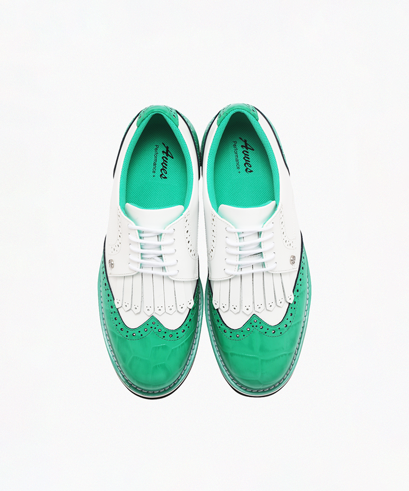The AVVES Paradise Series is a premium golf shoe line produced in small quantities using limited materials and additional craftsmanship. These classic golf shoes are ergonomically designed in collaboration with a traditional British shoemaker. Expertly crafted from premium natural calfskin leather, they are water-resistant and feature a unique croc pattern that enhances the luxurious quality of the shoe—drawing inspiration from the colors of tropical birds. The specially developed outsole offers the perfect grip and stability for an optimal swing, while maintaining a sophisticated appearance. Experience elevated performance and comfort with AVVES.