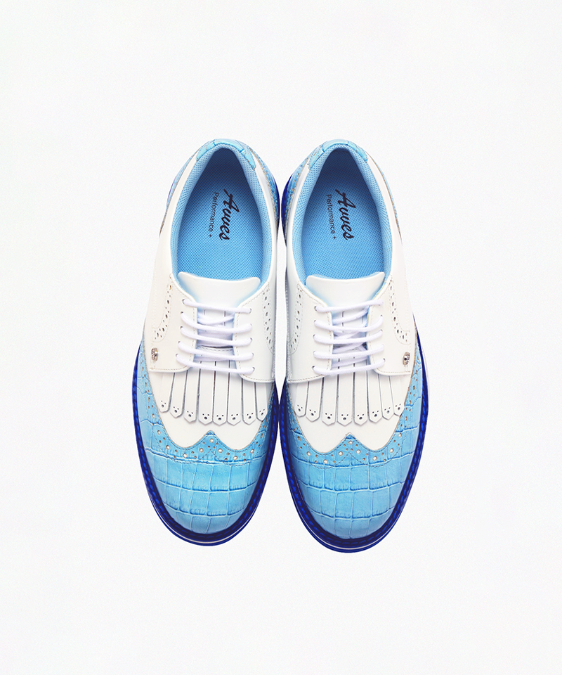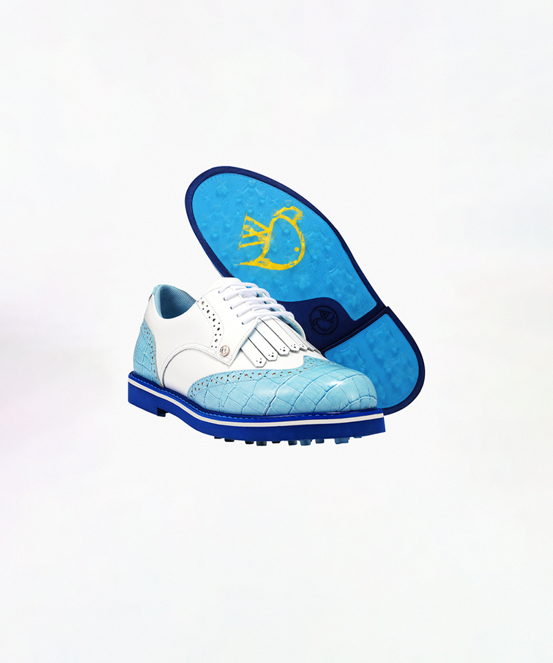 Sneakers golf shoes from AVVES are ergonomically designed in collaboration with a traditional British shoemaker. STARLING’s leather is uniquely patterned, adding rarity and elegance to the design. Exquisitely crafted from natural calfskin, these shoes are dew-resistant and feature a specially developed outsole that enhances their sophisticated aesthetic while delivering optimal grip for a perfect swing. Inspired by the colors of birds, every detail reflects a refined and sporty character. Experience superior comfort and performance with AVVES.