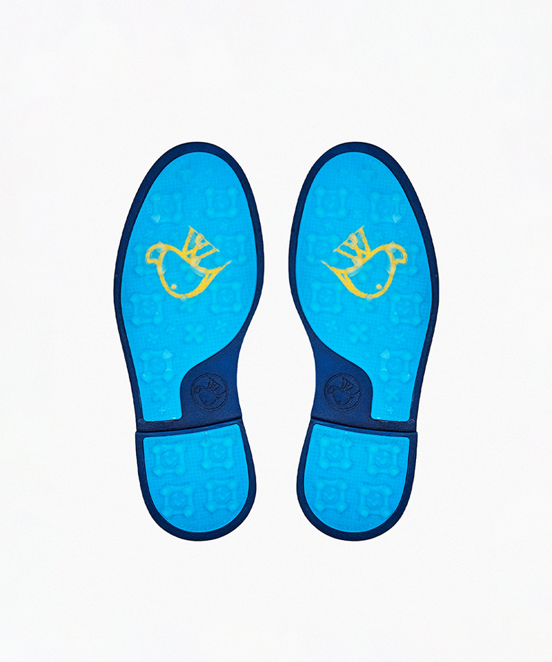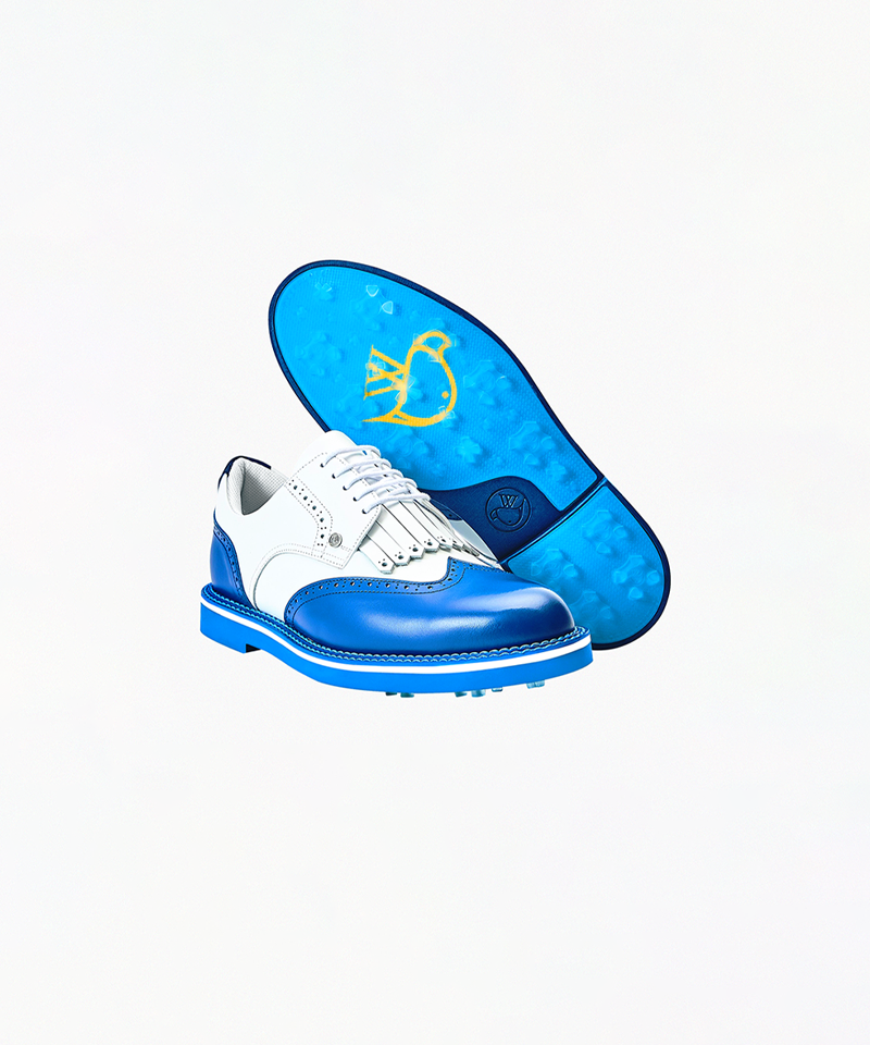 The enamel-finished polished calfskin details at the front and back highlight the refined craftsmanship. A specially developed outsole provides exceptional grip, stability, and swing control, while vibrant color accents draw inspiration from the natural hues of birds. Step into unmatched sophistication and comfort with AVVES.